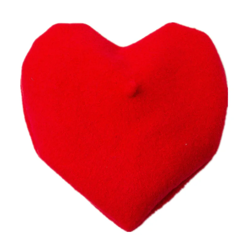 Женский шерстяной берет с большим сердечком, однотонный теплый берет в форме сердца, для зимы