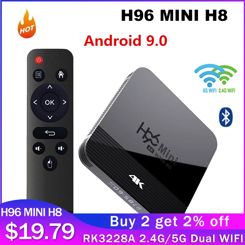 Smart TV Box H96 мини H8 Android 9,0 2G16G RK3228A 2,4G5G двойной WI-FI BT4.0 4K HD Смарт-медиаплеер Android ТВ Декодер каналов кабельного телевидения
