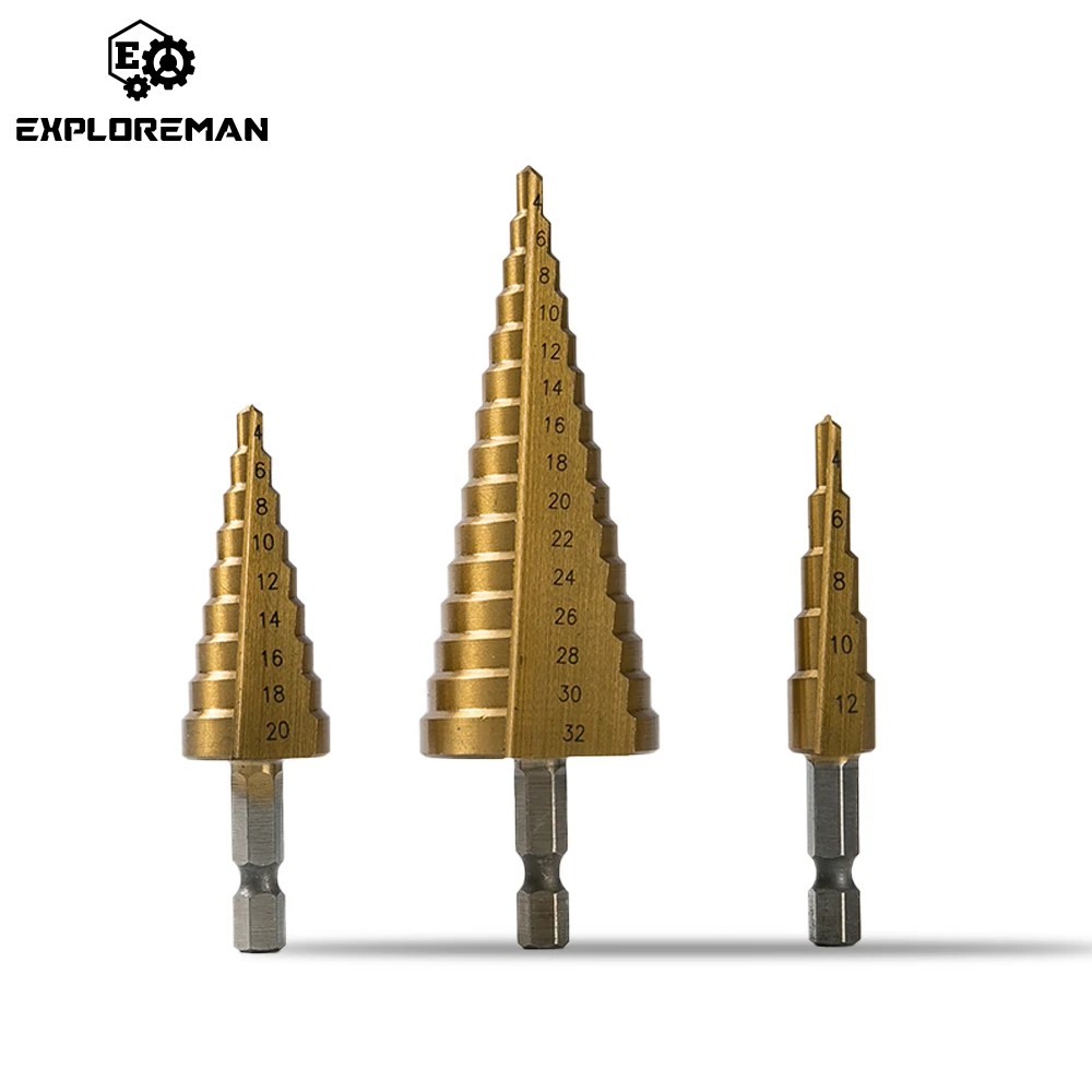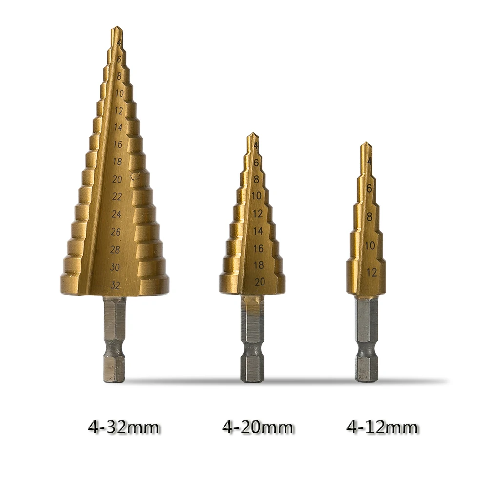 Набор ступенчатых Сверл из быстрорежущей стали с титановым покрытием, сверла 4-122032 мм, металлические шестигранные конические сверла, аксессуары для электроинструментов