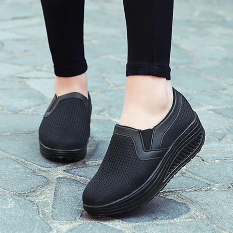 Женские кроссовки на танкетке, Повседневные Легкие прогулочные туфл...