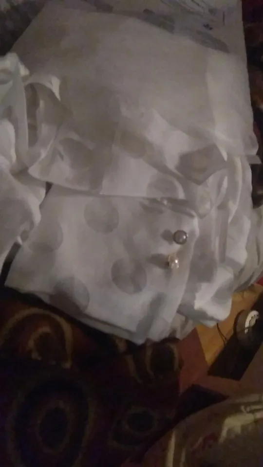 Пришло быстро, рубашка эффектная. Хорошая фурнитура. Правда пуговки слабо пришиты. Всё просвечивает)) особенно в этих кружочках)) маечку надо какую нибудь снизу докупить, а так все понравилось. Пришел заказ довольно быстро. бант длиннющий)) Главное с размером не ошиблась, остальное все поправимо и не критично))