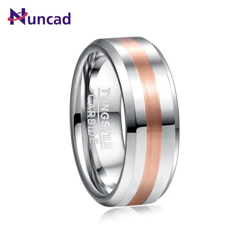 Nuncad мужское обручальное кольцо шириной 8 мм, обручальное кольцо, электрическое полированное кольцо из розового золота и карбида вольфрама