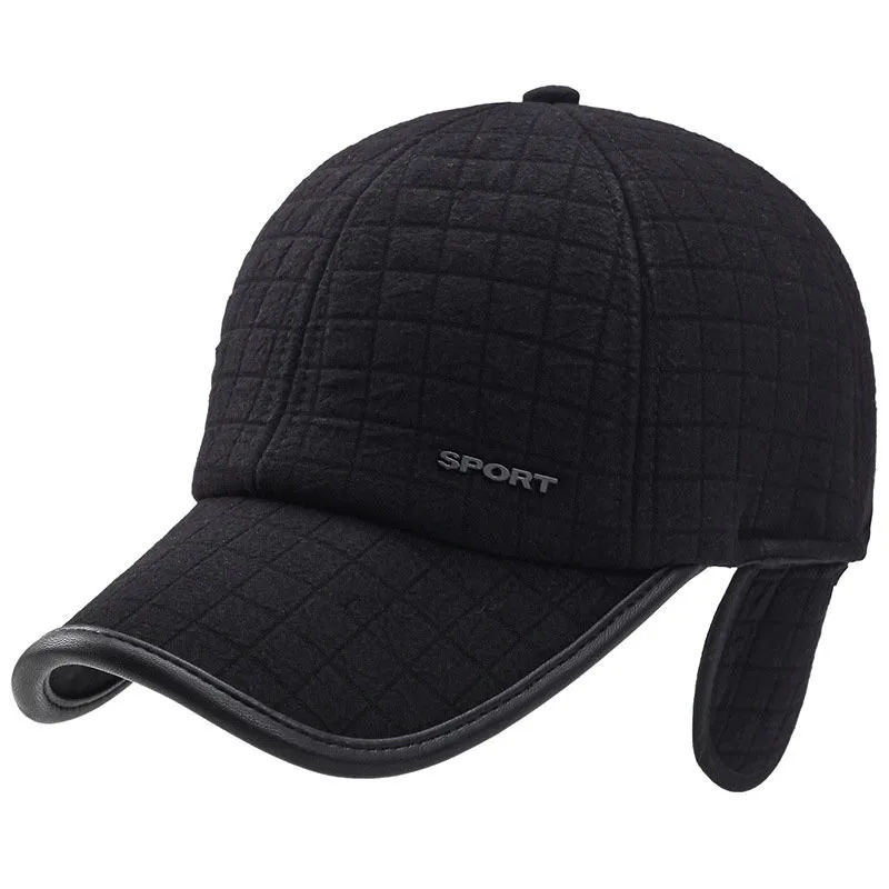 Бейсболка мужская зимняя с ушами, теплый хлопок, плотная, стандартная