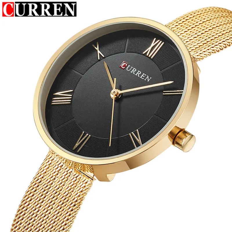 Curren женские часы Лидирующий бренд роскошные золотые сетки ремешо...