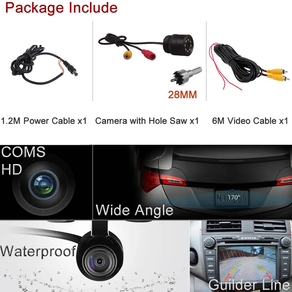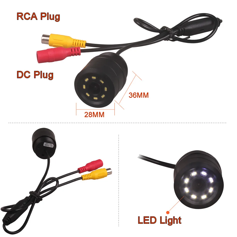 Парковочная HD-пила заднего вида, 28 мм, водонепроницаемая, светодиодная Светильник ночного видения, для автомобильного монитора, DVD, головного устройства