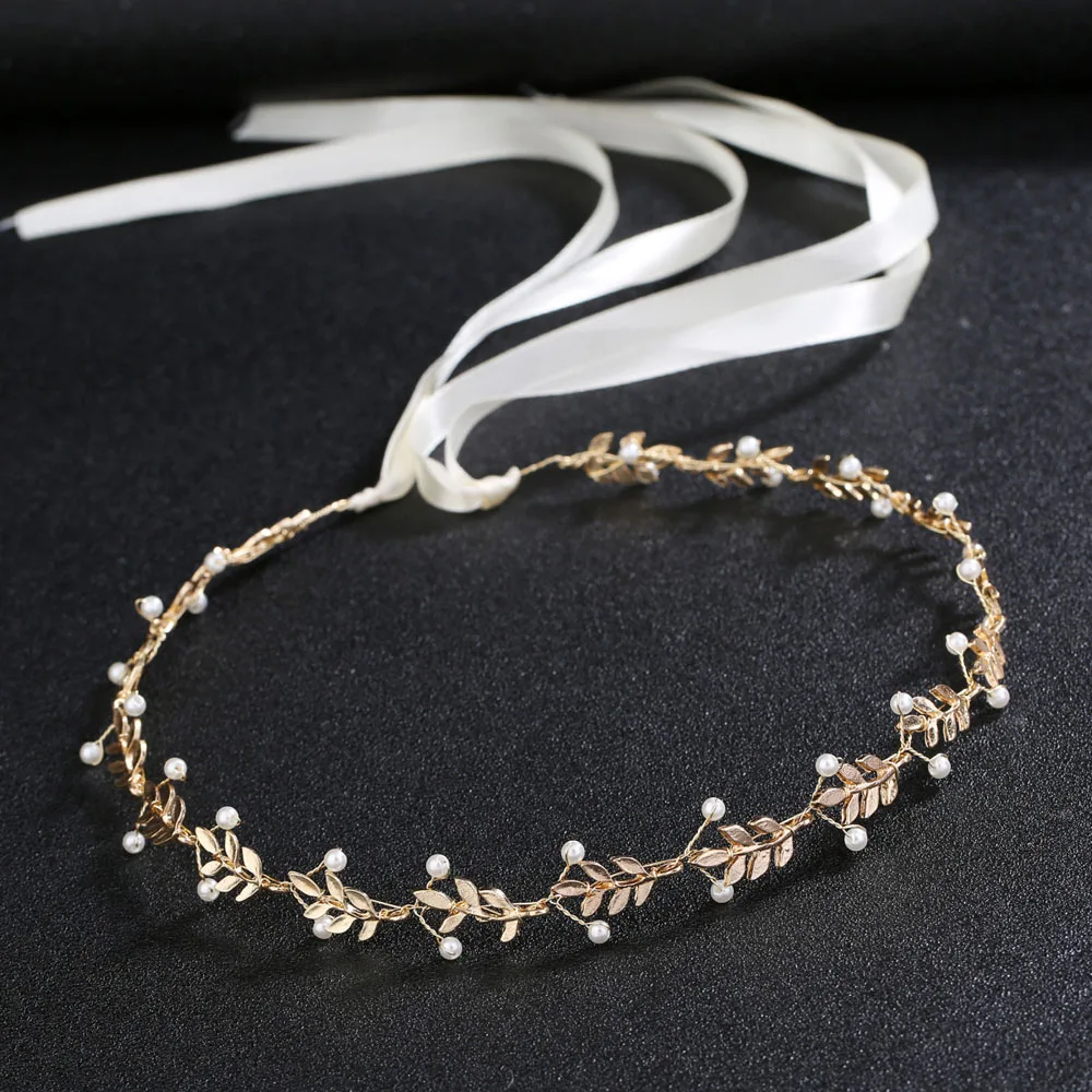 Свадебные диадемы и короны с золотыми листьями и жемчугом, свадебные украшения для волос