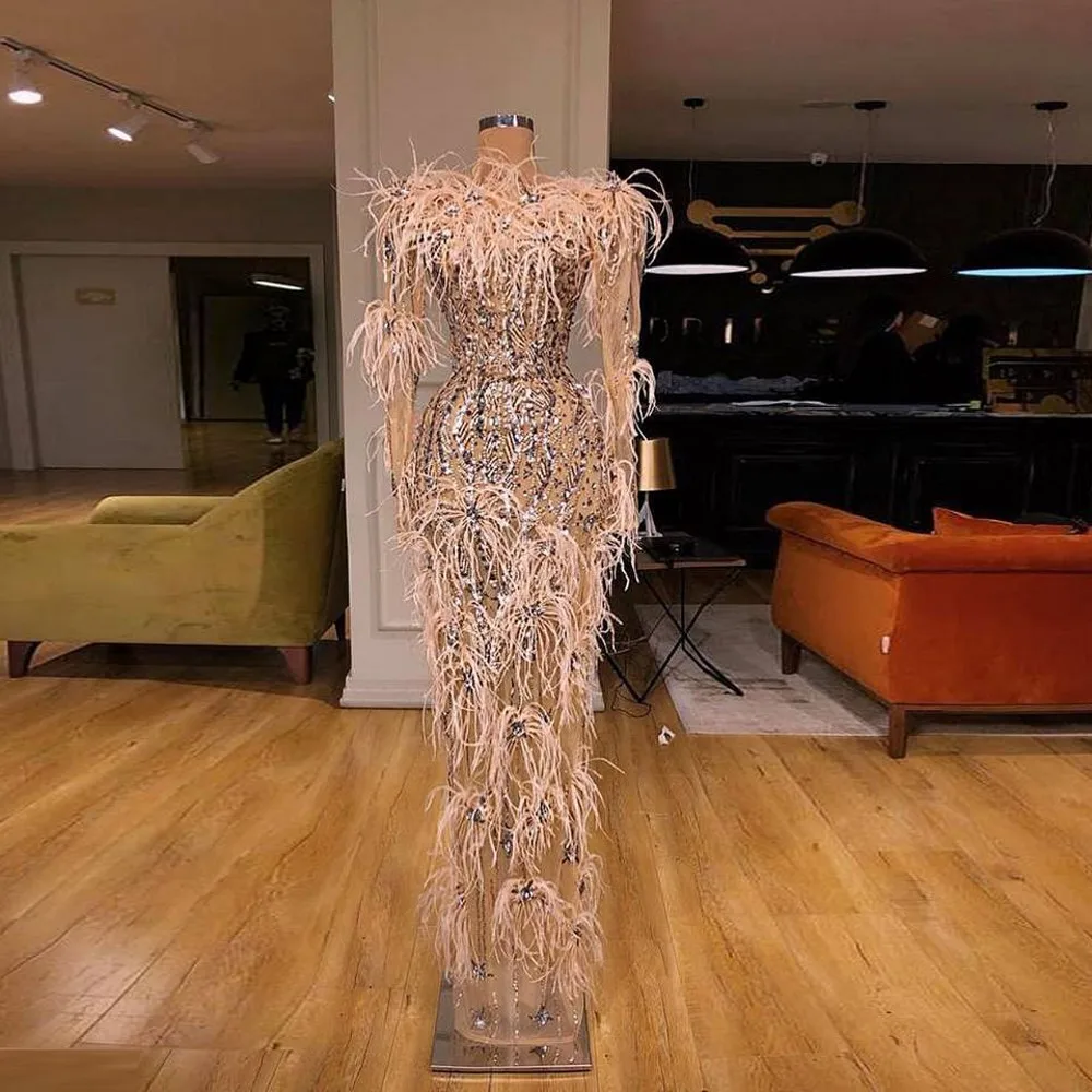 Платья с перьями для выпускного вечера, Украшенные бусинами, вечерн...