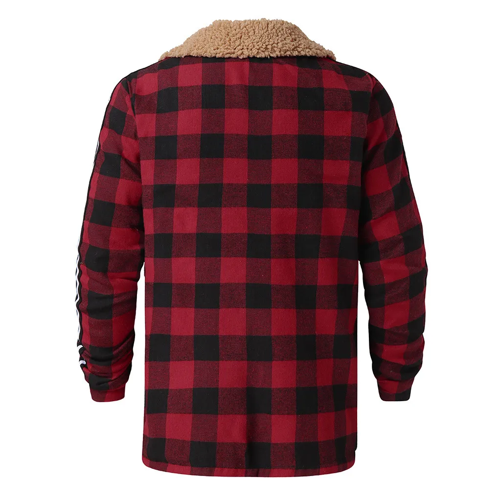 Куртка мужская зимняя в клетку, с плюшевой подкладкой, 2021