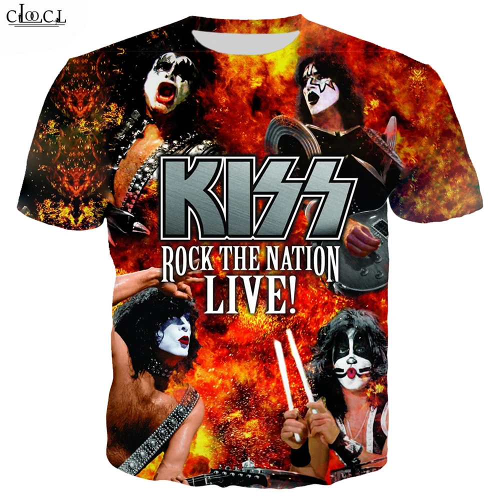 Футболка Rock Kiss с металлическим ремешком для мужчин и женщин, Классическая модная уличная одежда с 3D принтом и короткими рукавами, Свитшот со звездами, топы для пар