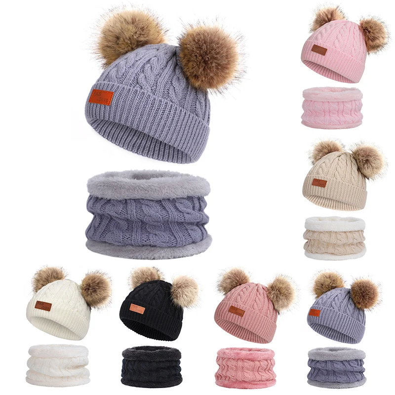 Зимняя детская шапка, шарф, костюм с помпоном, детские шапки, плотн...
