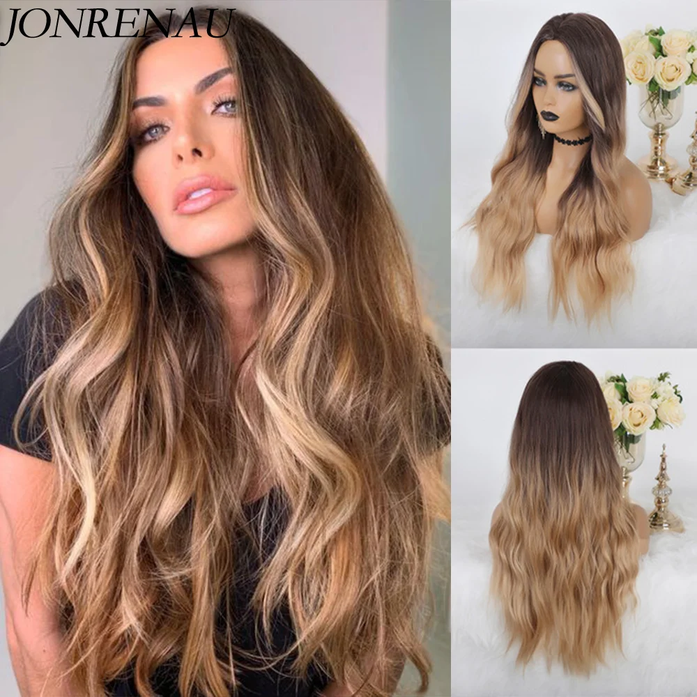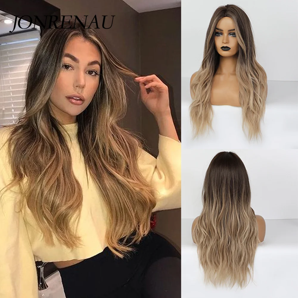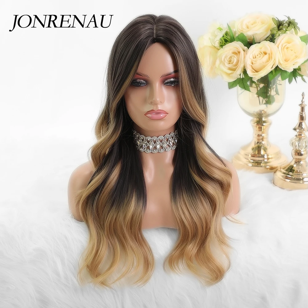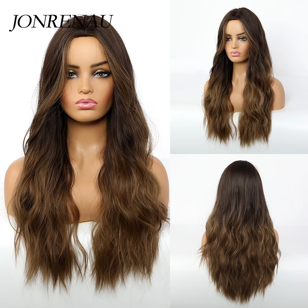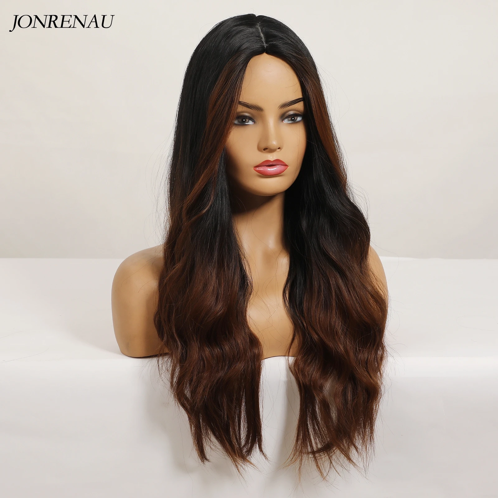 Парик JONRENAU из натуральных каштановых волос с эффектом деграде, длиной 24 дюйма, термостойкие парики для чернокожих женщин