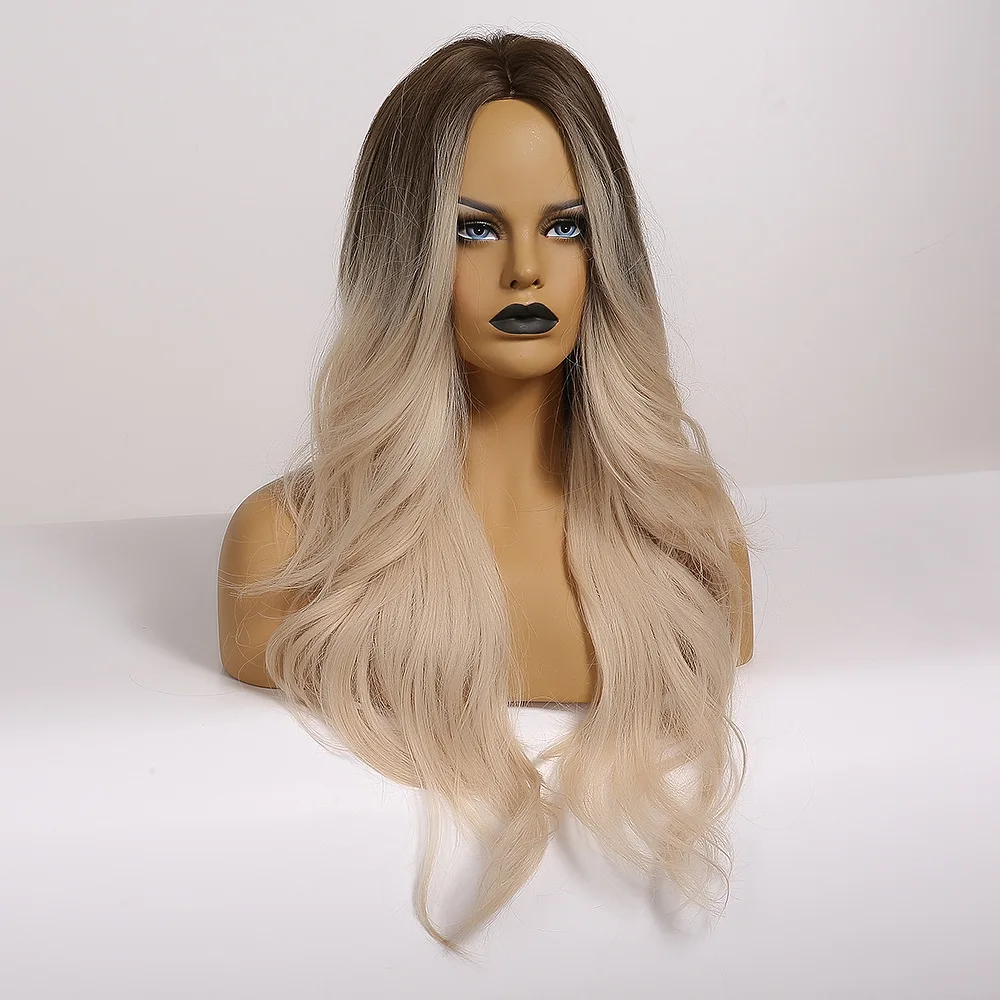 Blonde in a second!!! Wig of excellent quality made of heat resistant synthetic fiber, looks very beautiful wig can be straightened with an iron or twist on a curling iron, hair length 65 cm, hair волосы, with a transition from dark to blonde. Excellent imitation of head splitting. Hair is very similar to natural, thick and touch very nice wig collected on a special cap, there are combs and straps for fixing. A wig storage cap and a head mesh cap are included. Mega delivery fast, smell absent. Seller as a gift put false eyelashes and rubber bands)) Thank you very much.