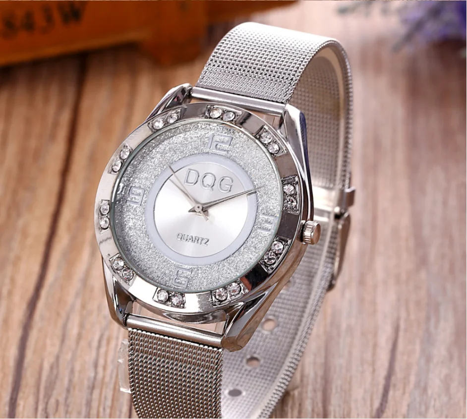 Роскошные брендовые кварцевые женские часы Zegarki DQG из серебристой нержавеющей стали с сетчатым ремешком, высококачественные мужские часы с медведем