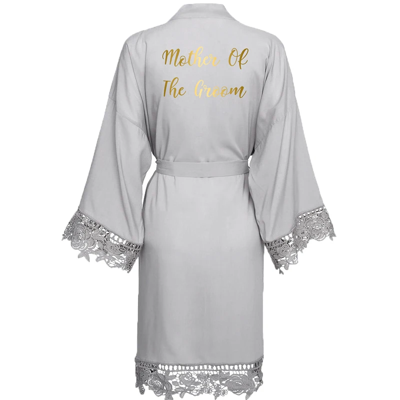Женский банный халат, из вискозы и хлопка, с кружевом, серого цвета, размера плюс