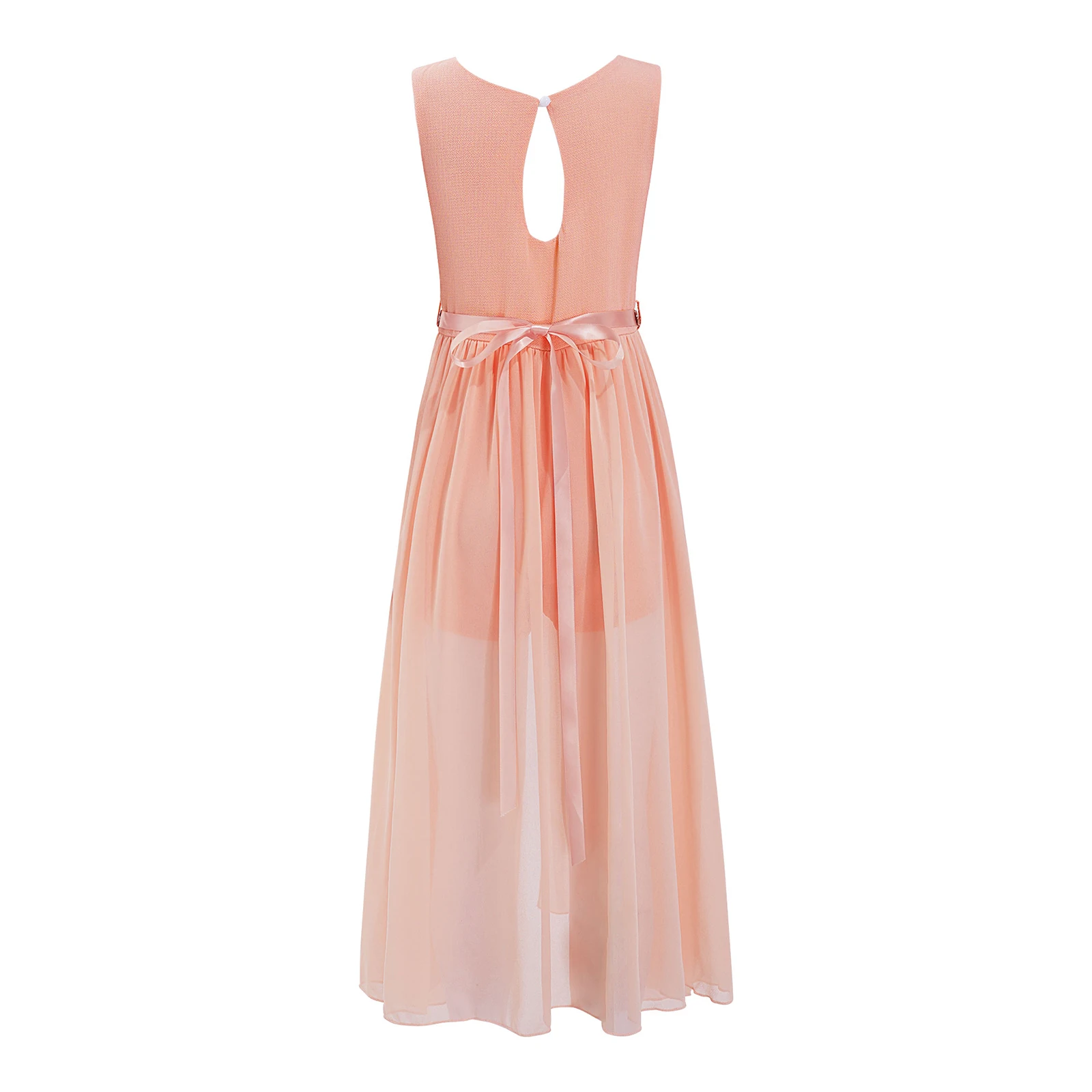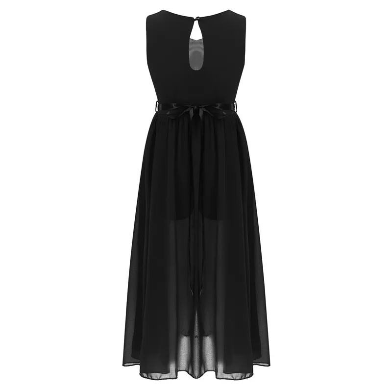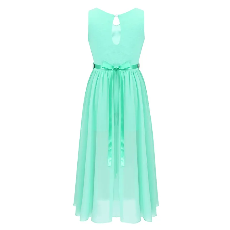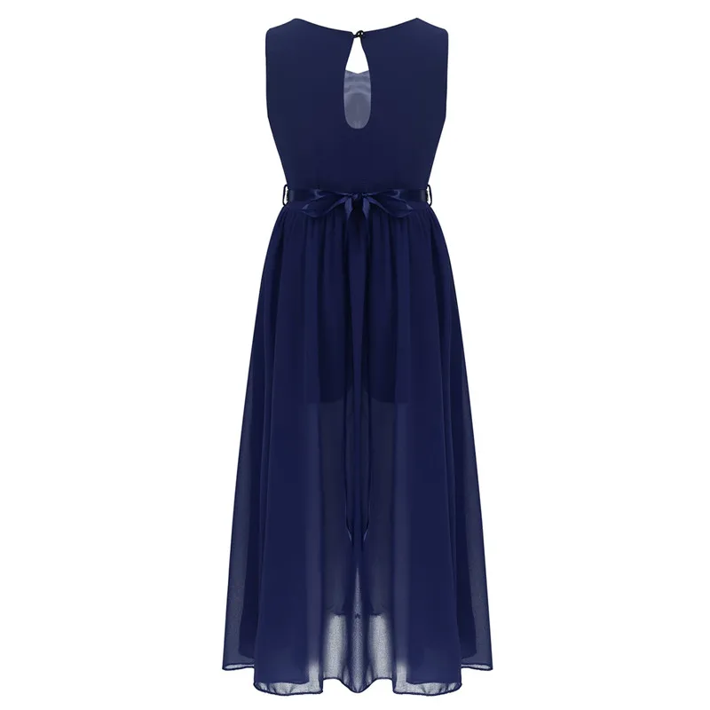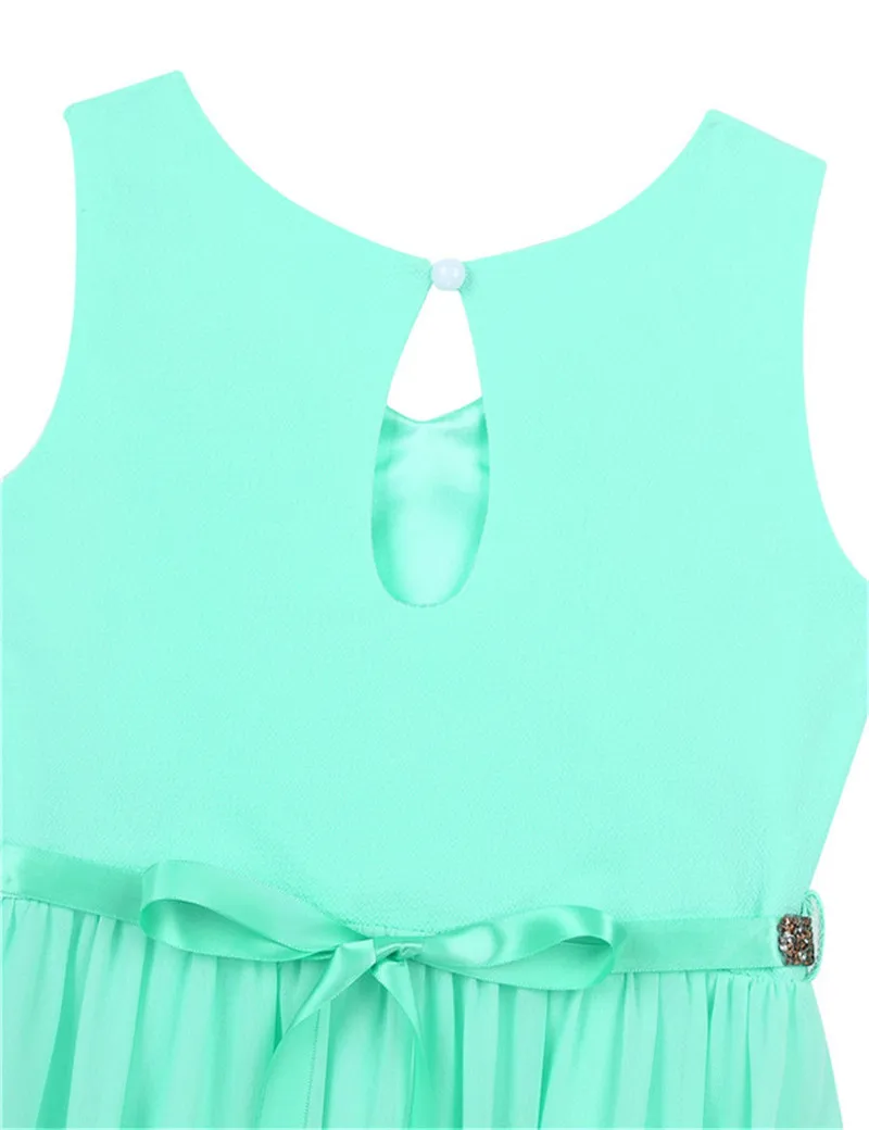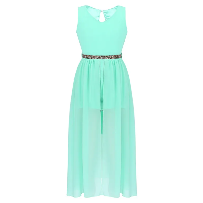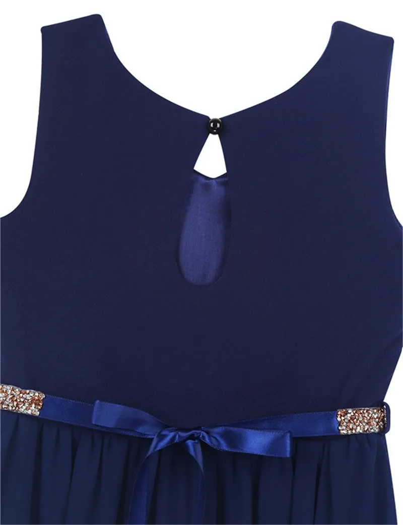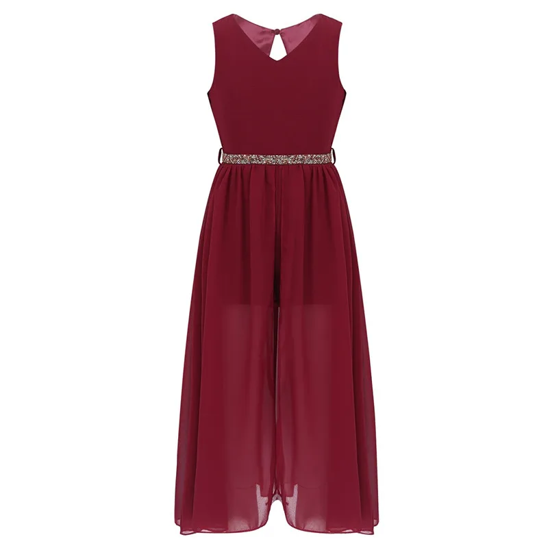 Пола Длина шифоновые платья в цветочек для девочек детская одежда принцессы без рукавов с v-образным вырезом Макси платье-комбинезон с Стразы ремень для школьный танцевальный