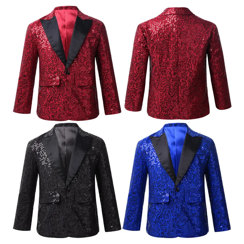 Новое поступлениеСтильный блестящий деловой костюм с блестками для мальчиков костюм с отворотом на одной пуговице, пиджак блейзер с цветочным рисунком для мальчиков смокинг, Свадебные вечерние костюмы