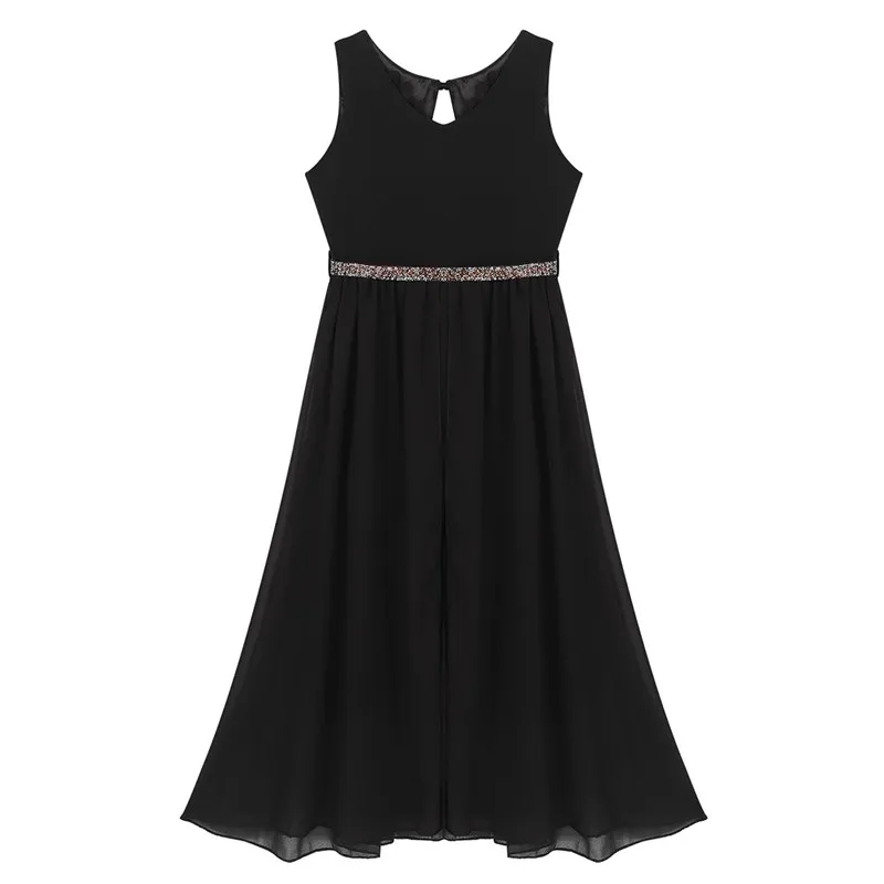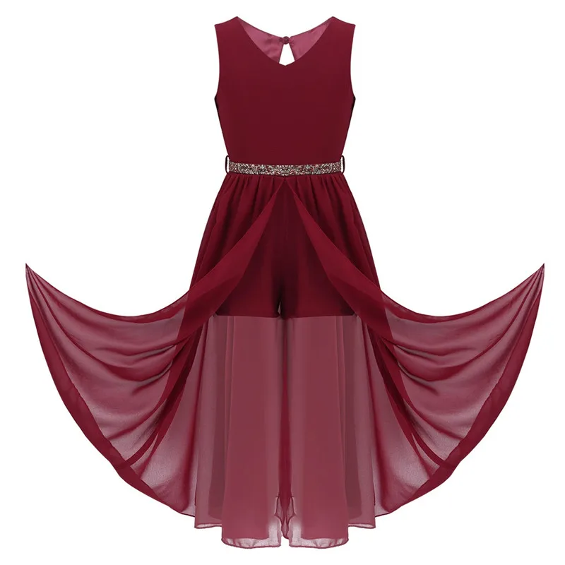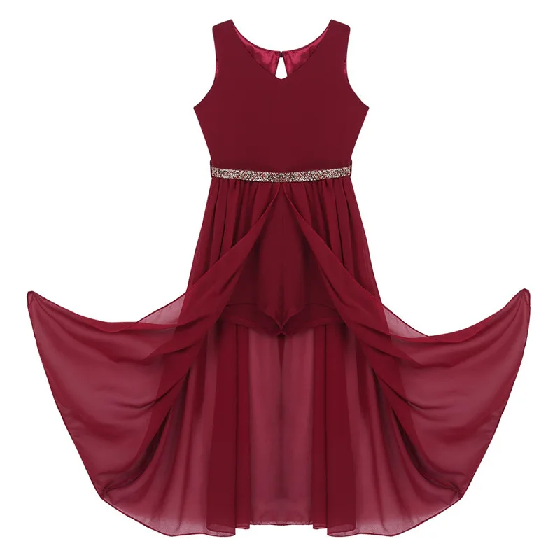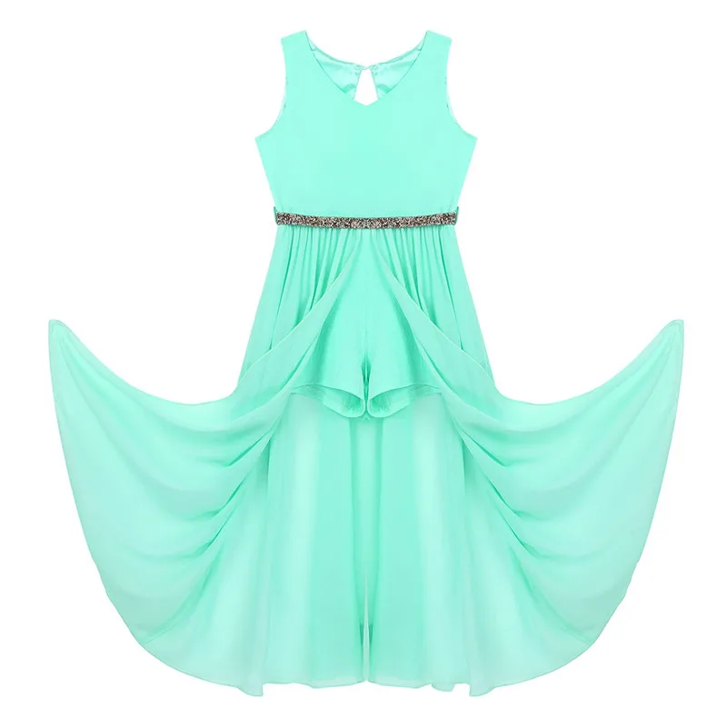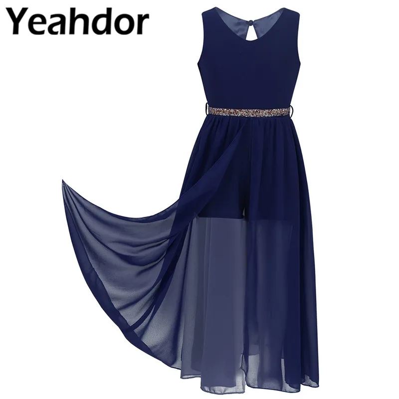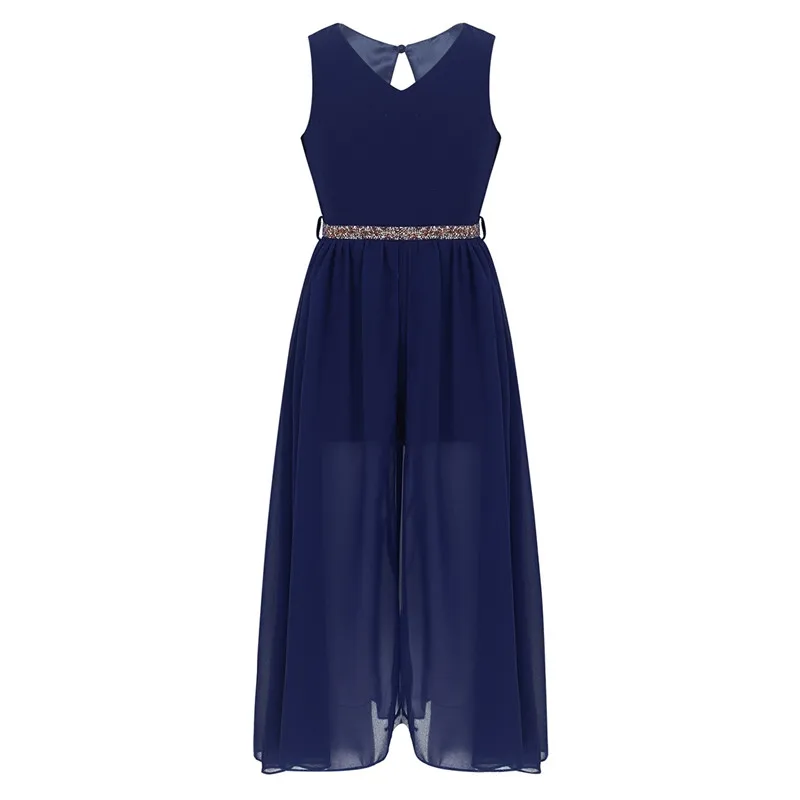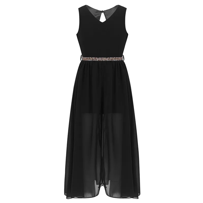 Особенности:Платье-комбинезон изготовлено из полиэстера и шифона, ручная стирка.Таблица размеров означает возраст для девочек, но только для общего руководства.Без рукавов, с v-образным вырезом и застежкой на пуговицы; Лиф с атласной подкладкой для комфортного ношения. Замочная скважина сзади. Скрытая застежка-молния сбоку.1 слой Макси-длины с шифоновым наложением крепится вокруг талии. Поставляется с Стразы ремень для завершения установки. В комплект входит: Красивое и стильное платье для вашей девочки.Идеально подходит для школьных танцев, дней рождения, праздников, фотосессий, официальных мероприятий или других особых случаев.