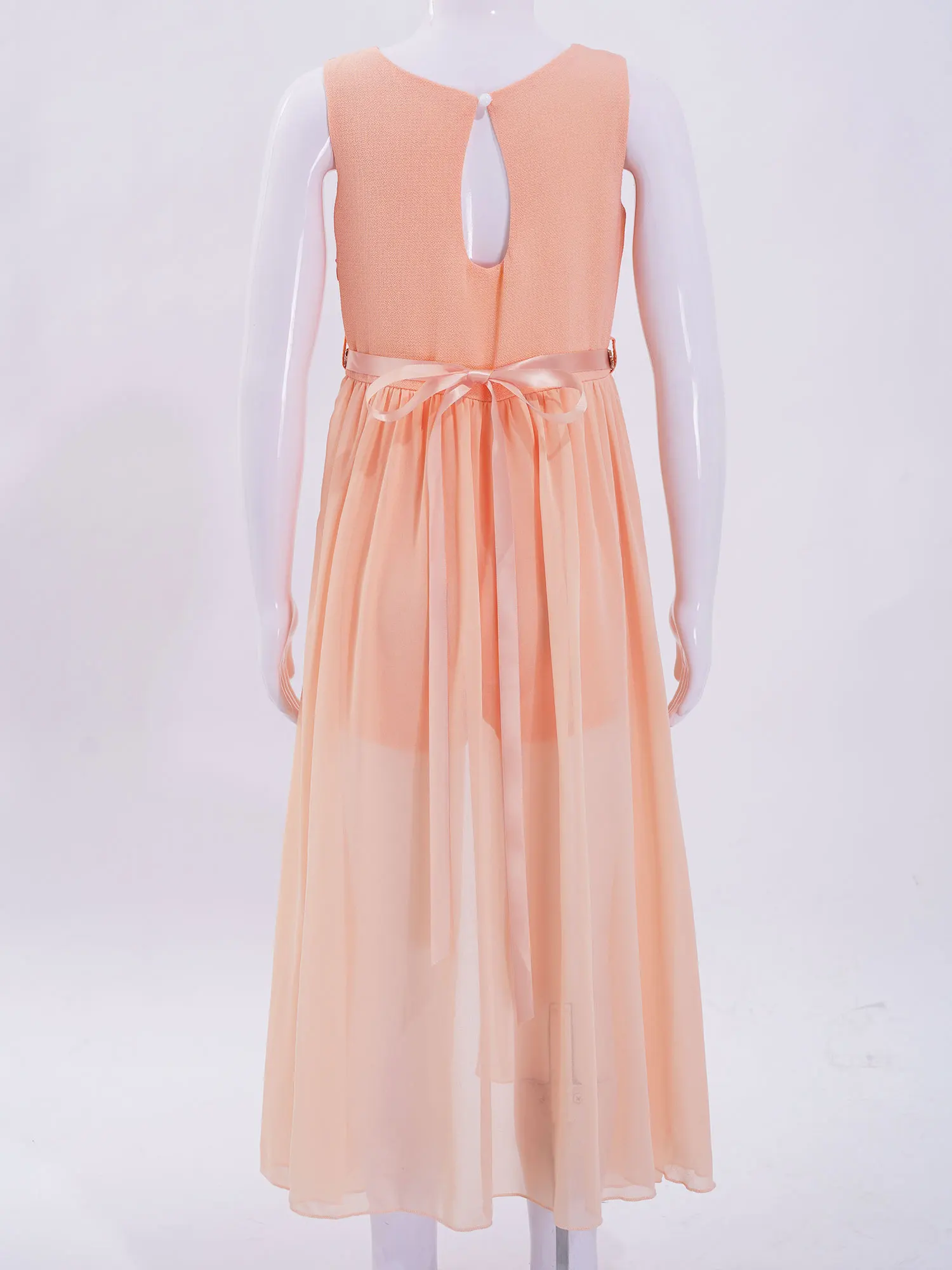 Платье для подружки невесты, шифоновые платья с цветами для девочек, платье-макси без рукавов для принцессы, детское элегантное официальное платье для девочек