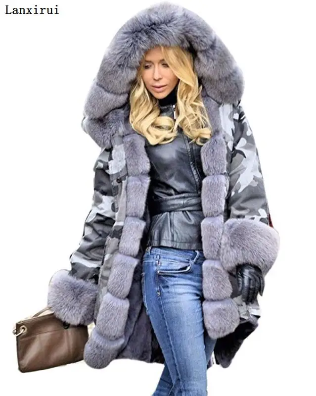 Парка женская Lanxirui, с большим меховым воротником, с капюшоном, ...