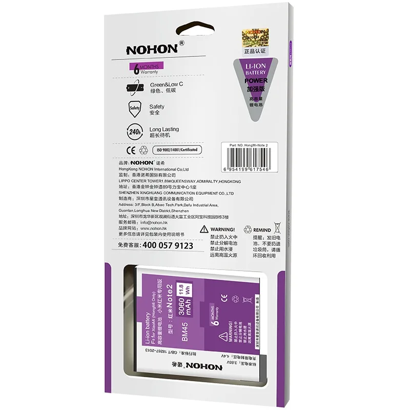 Аккумулятор NOHON BP41, BP40, BM4E, BM47, BM4A, BN30, BN34, BN42, B...