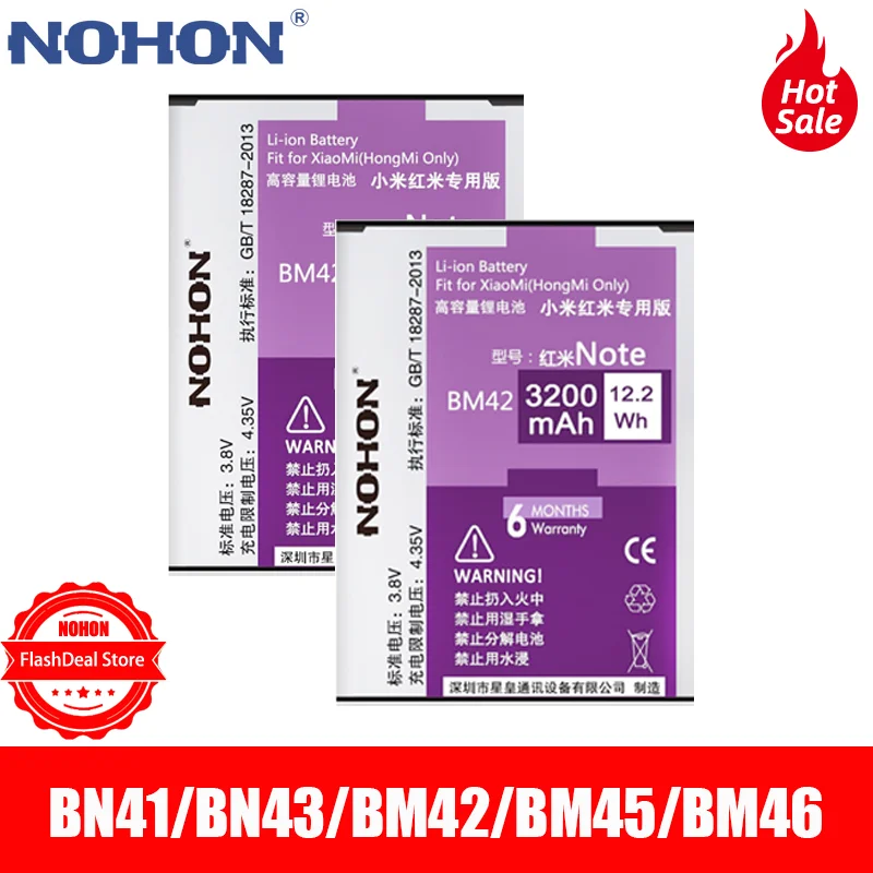 NOHON батарея для Xiaomi Redmi Note 2 3 4 4X 3S 3X Hongmi BM47 BM46...