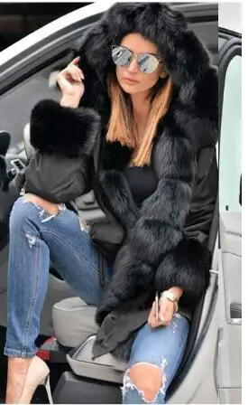 Парка женская Lanxirui, с большим меховым воротником, с капюшоном, теплая, с подкладкой из лисьего меха