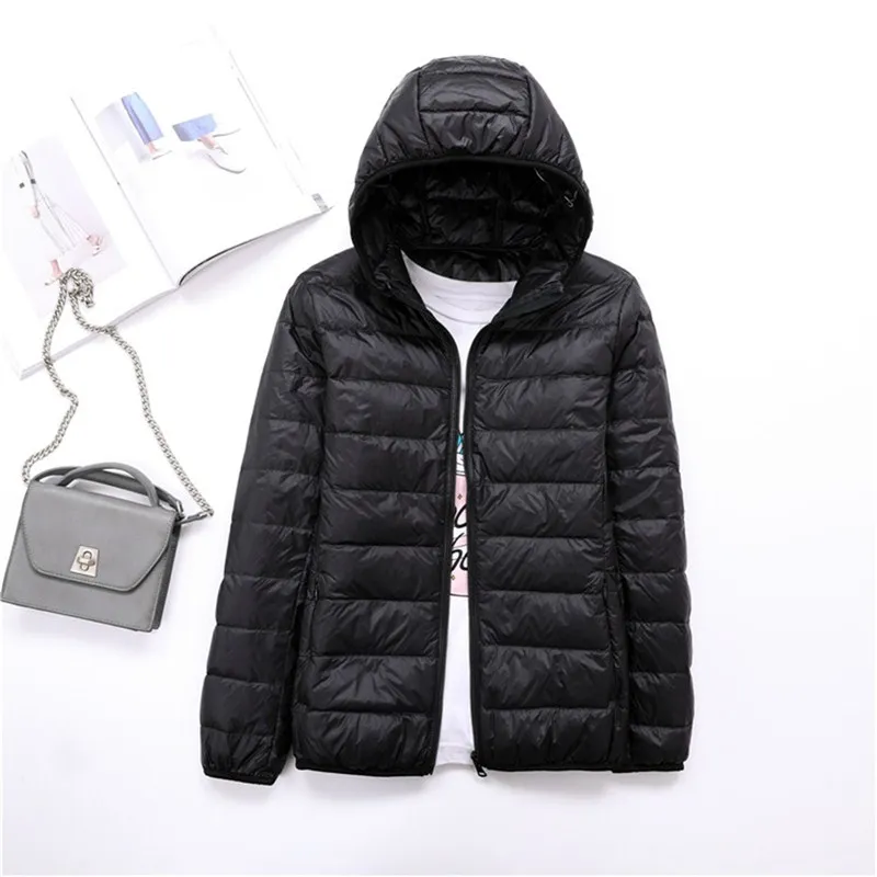 Женский ультралегкий пуховик с капюшоном, осенне-зимняя тонкая курт...