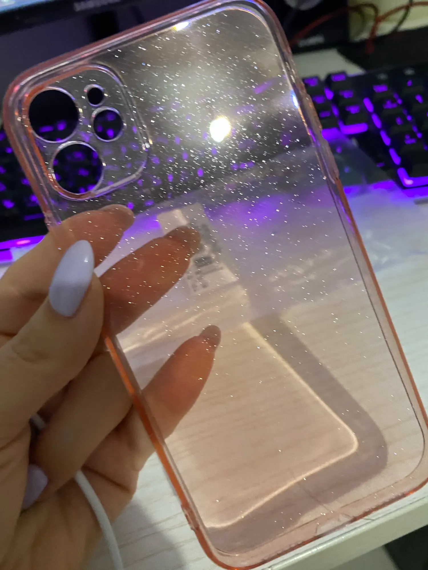 Ооочень долго шла посылка - больше 2 месяцев. Вообще не отслуживалась. Положили в почтовый ящик. Беру уже второй чехол - не скользит, это самое главное для меня. Плюс очень симпатично смотрится, не прям уж искрами сверкает, довольно умеренные блёстки