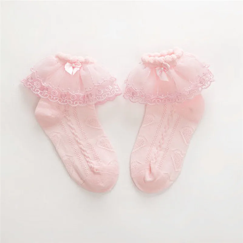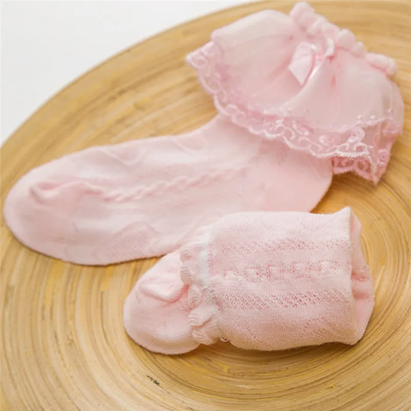 Бесплатная доставка, летние детские кружевные носки с оборками для маленьких девочек, нескользящие носки принцессы с оборками, белого, розового, бежевого цветов