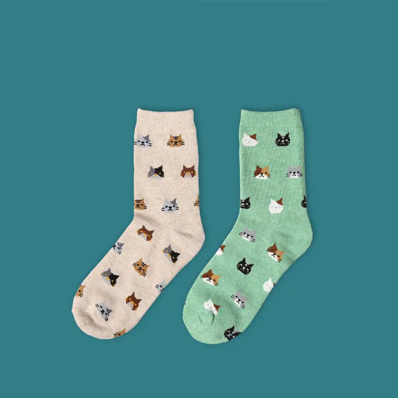 Новинка, модные женские носки с милыми котами, хлопковые носки с ри...