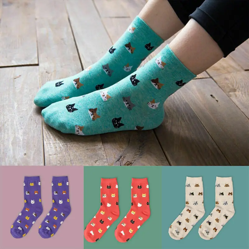 Модные новые женские милые носки в виде кошек из хлопка 5 цветов 1 пара