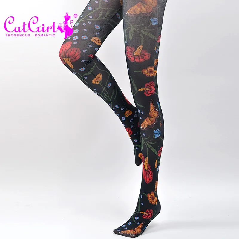Женские колготки с принтом, жаккардовые чулки, весна-осень, шелковые, японская мода