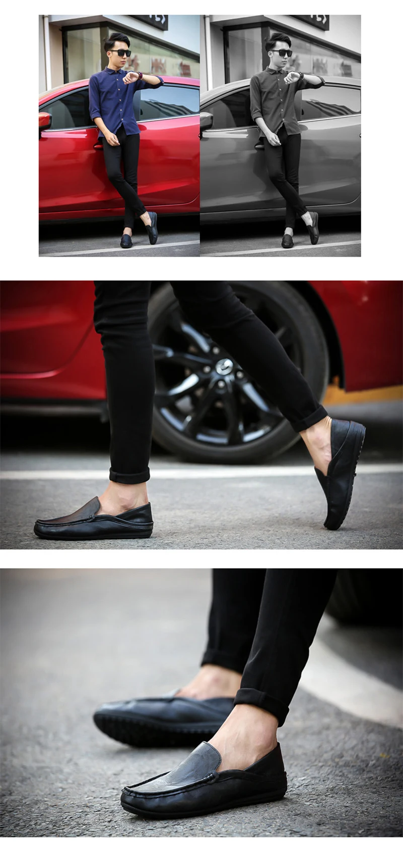 Лоферы мужские из натуральной кожи, Повседневная модная брендовая мягкая обувь на плоской подошве, корейский стиль, для вождения, весна-осень