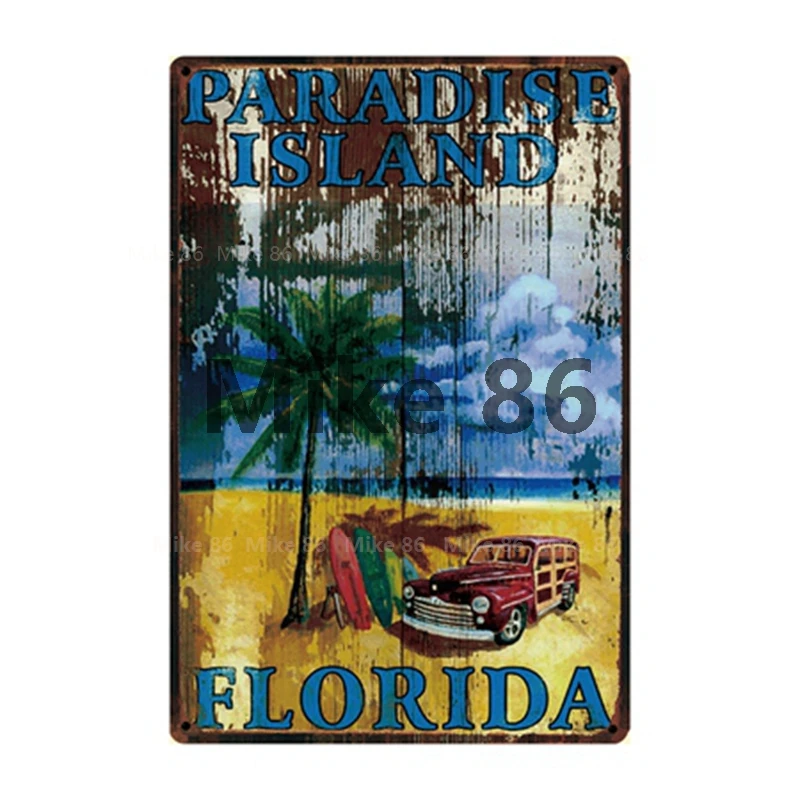 [Mike86] дорожный кантри металлическая пластина Гавайские настенные плакаты винтажная жестяная вывеска антикварные сувениры фестиваль подарок FG-257