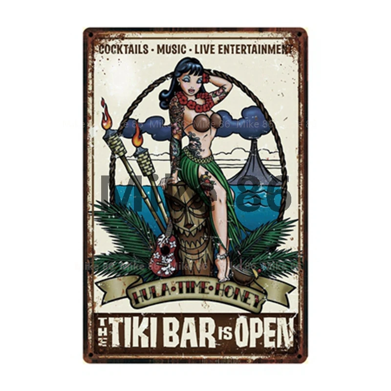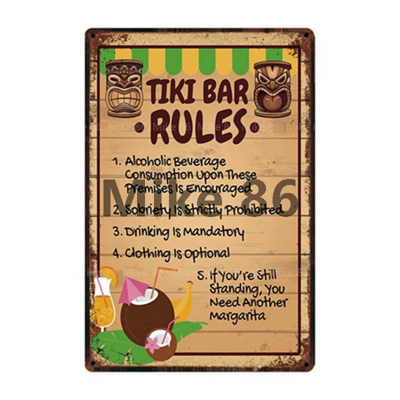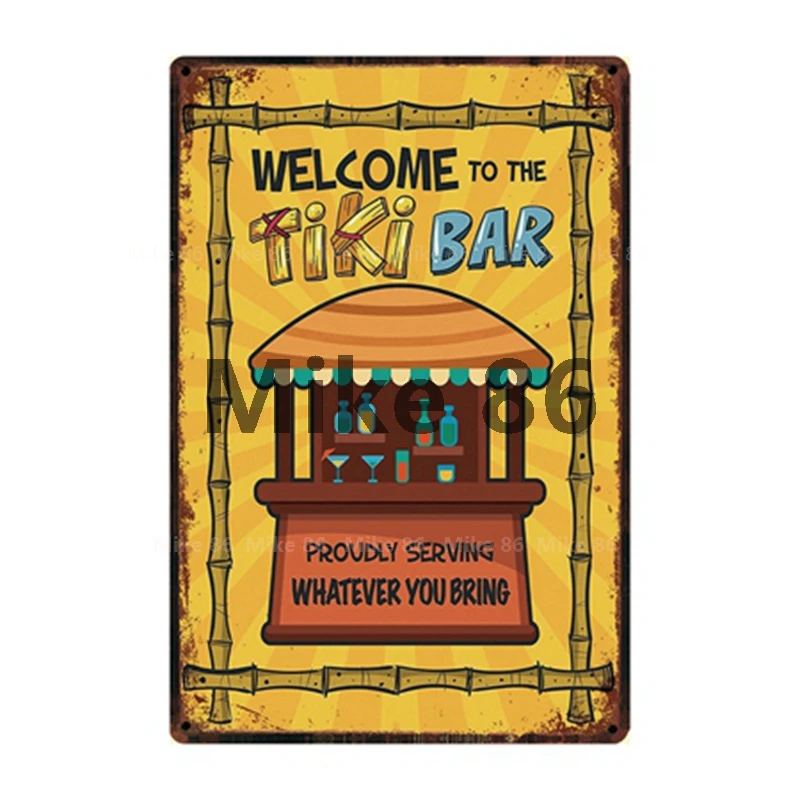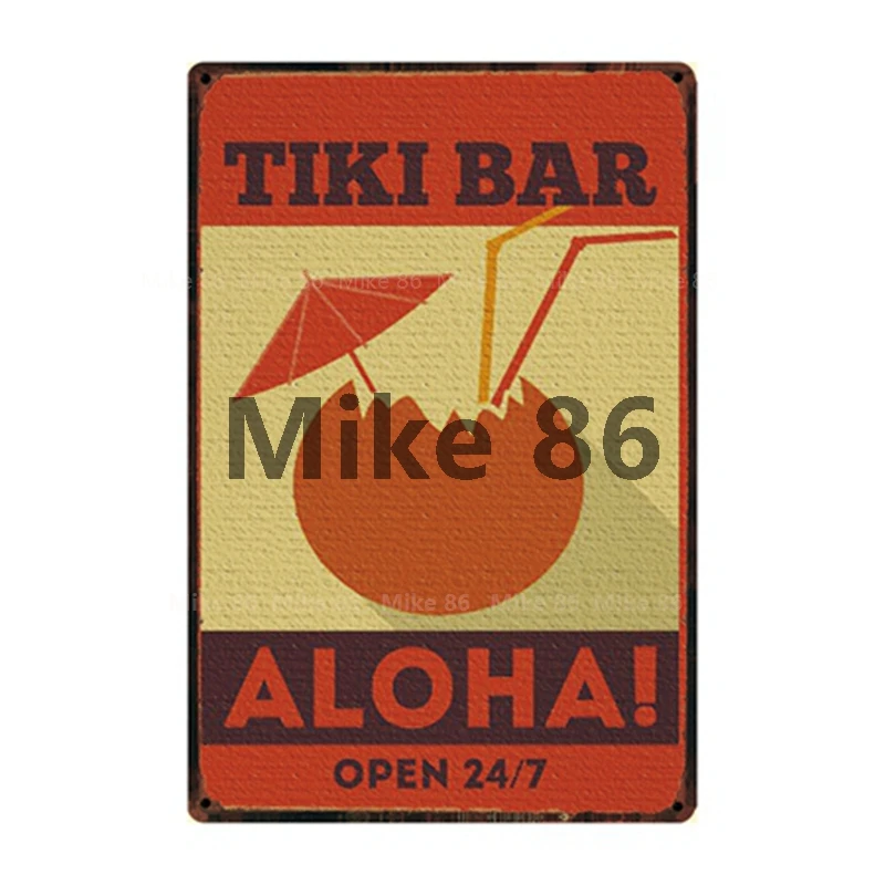 Mike86 добро пожаловать в наш TIKI BAR ALOHA, открытый 247 металлический знак, оловянный постер, домашний декор, брусок, настенная живопись, размер 20*30 см, DD-17