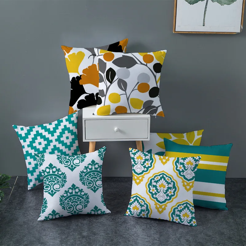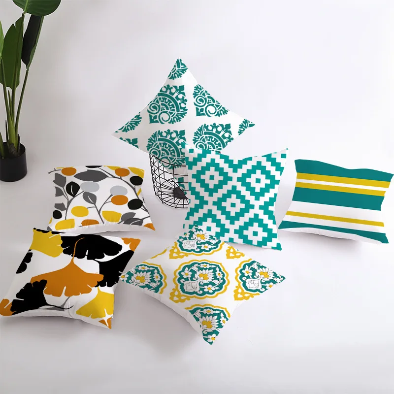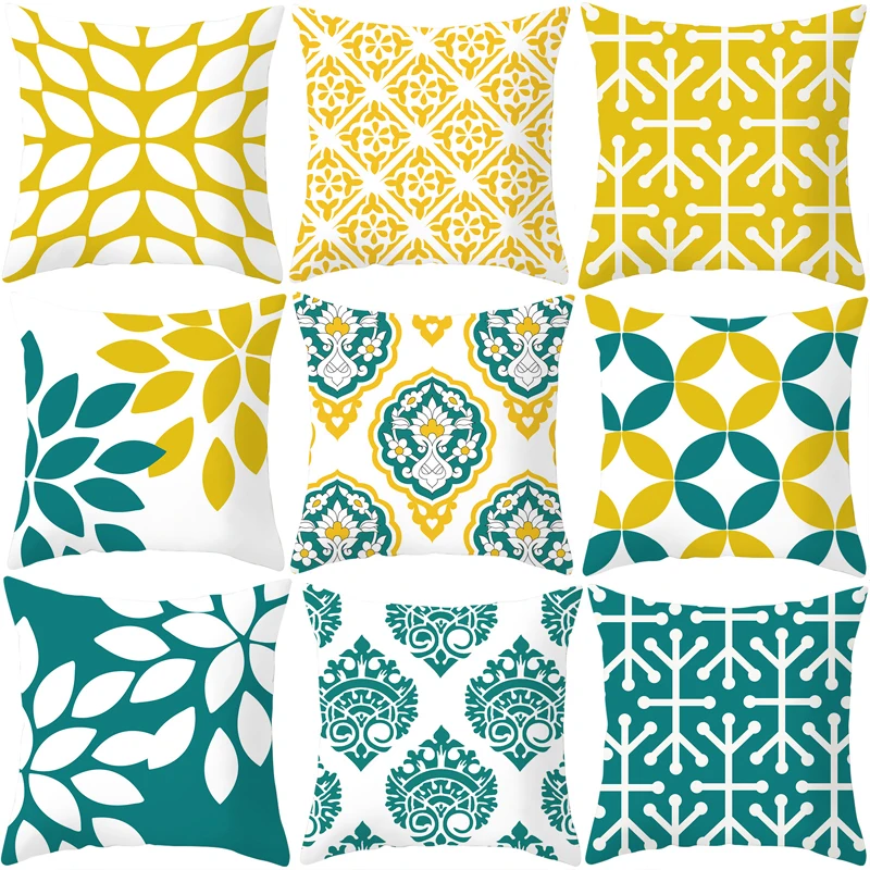 Желтая синяя Подушка Чехол Полосатый горошек листья популярная Скандинавская Подушка Чехол домашний текстиль полиэстер с геометрическим принтом декоративный