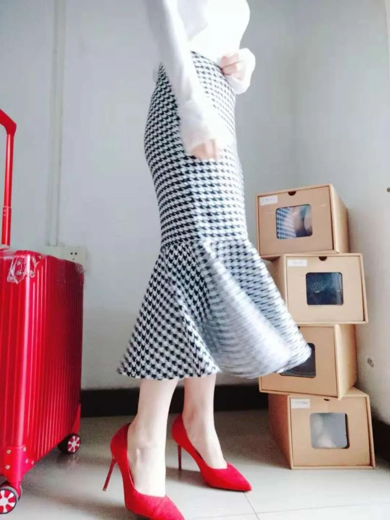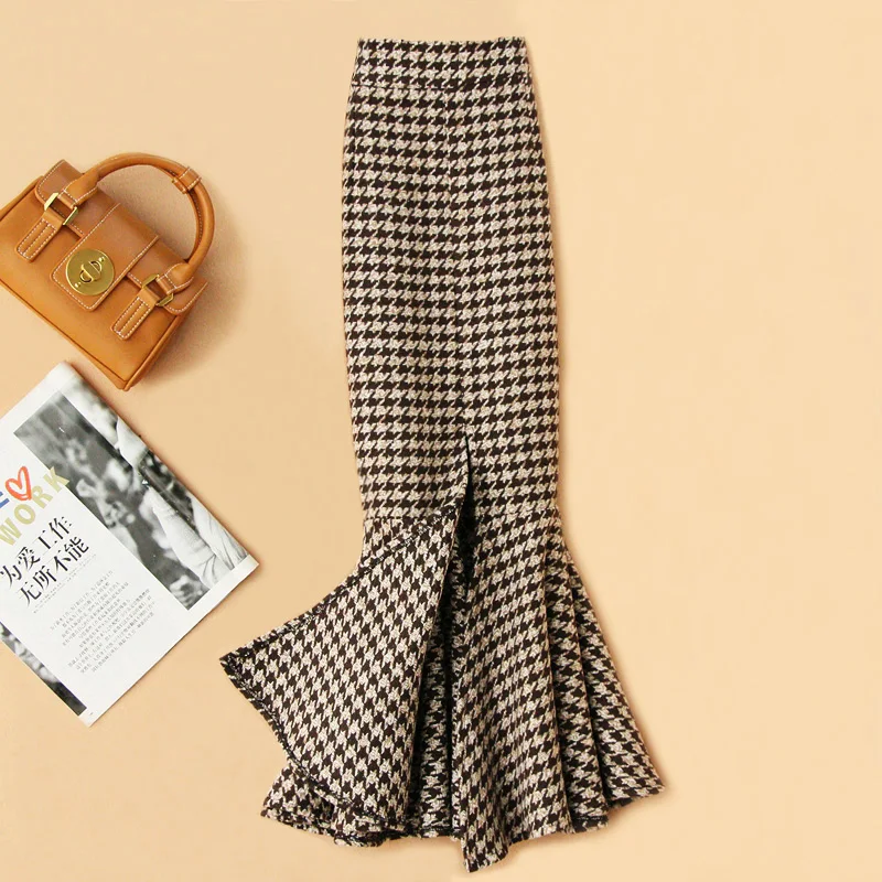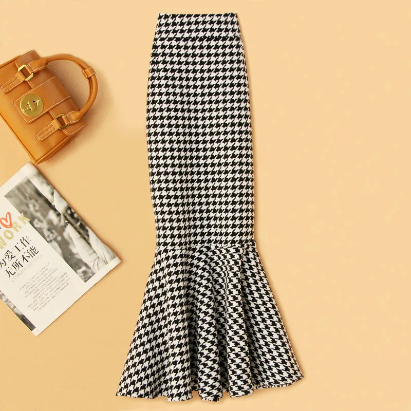 Плотная Шерстяная Юбка в клетку гусиная лапка, Женская облегающая юбка с высокой талией, облегающая бедра, Офисная Женская юбка, размера плюс