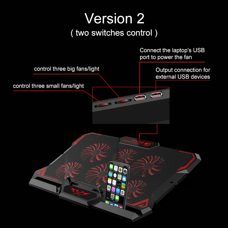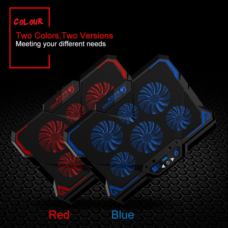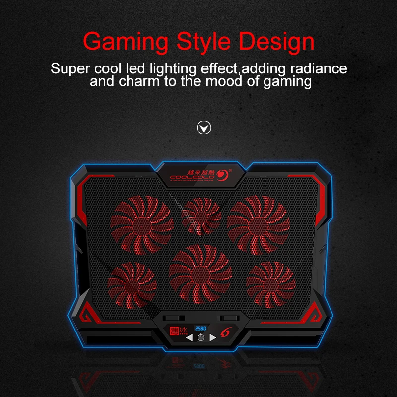 Подставка-Кулер для ноутбука 14-17 дюймов, с 6 вентиляторами, 2 USB-порта, со светодиодным экраном, 2600 обмин