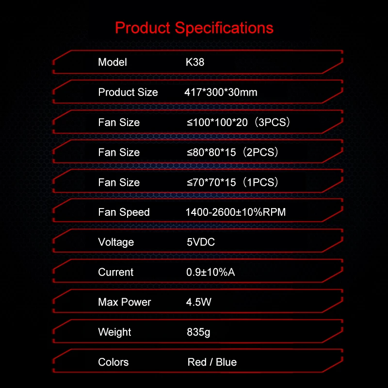 + Быстрая доставка (около 3 недель) + Pad работает более бесшумно, чем мой предыдущий, так что это очень удобно для меня, а также хорошо охлаждает мой ноутбук + 3 различных режима охлаждения -Никаких инструкций на английском языке (после подключения планшета к usb-кабелю вы увидите, что экран планшета мигает один раз, затем вы должны нажать кнопку питания на некоторое время, а затем она начнет работать) -Мой коврик немного поцарапан
