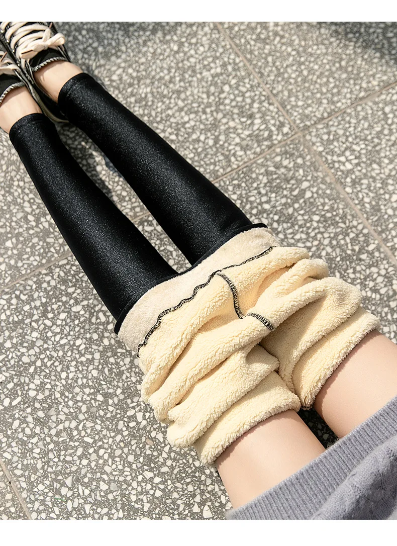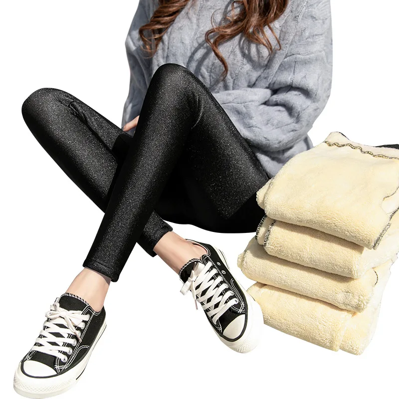 Женские обтягивающие брюки-карандаш с люрексом, черные плотные теплые бархатные брюки с высокой талией, повседневные шерстяные флисовые Леггинсы для зимы