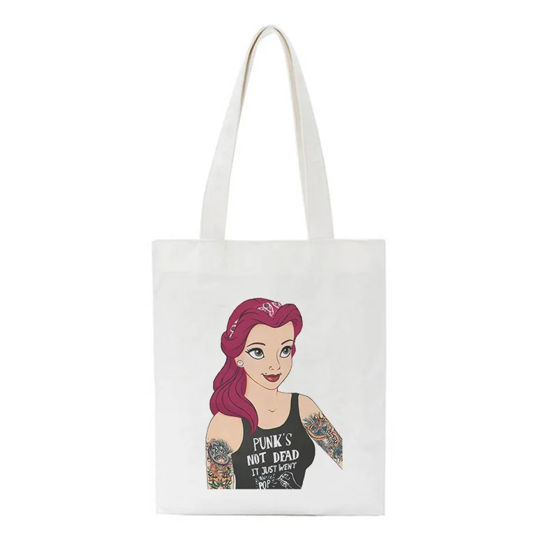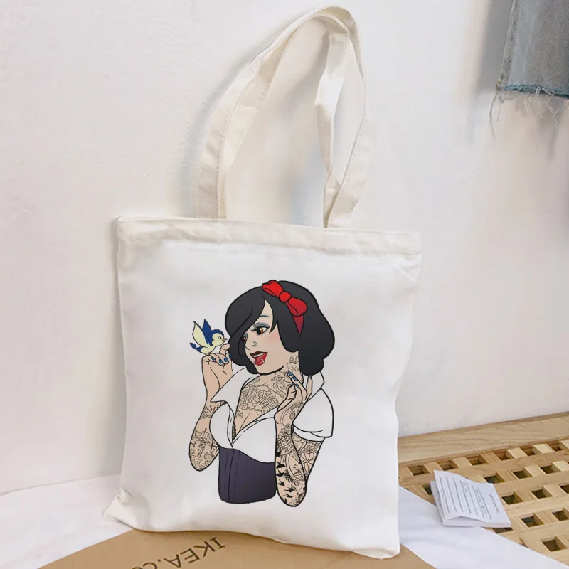 Холщовые сумки через плечо Kawaii С мультяшным принтом принцессы, л...