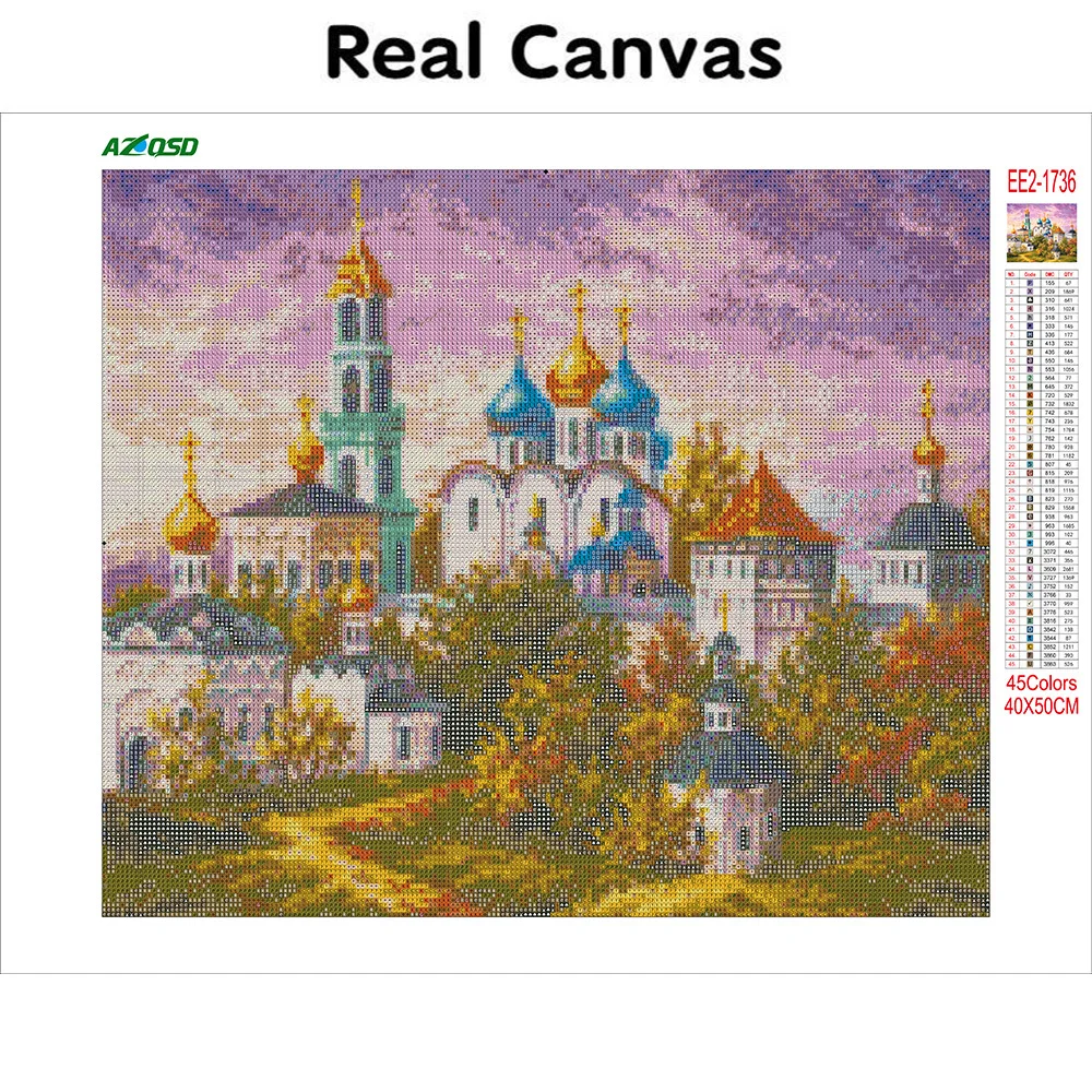 AZQSD алмазная мозаика церковь алмазная вышивка пейзаж рукоделие крестиком картина стразами декор для дома подарок