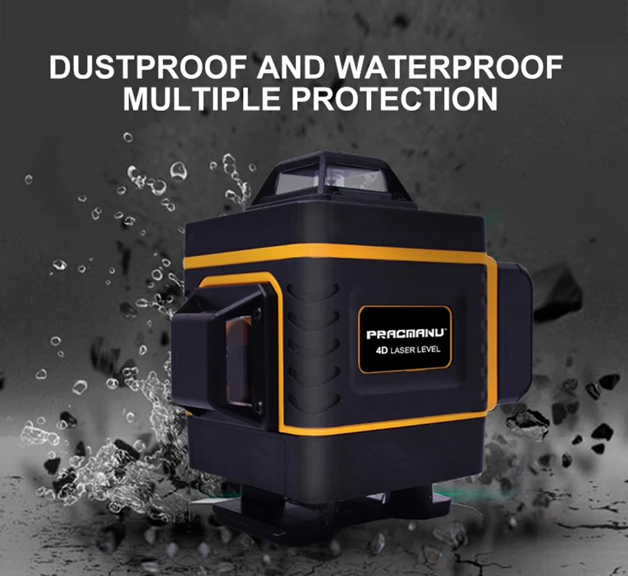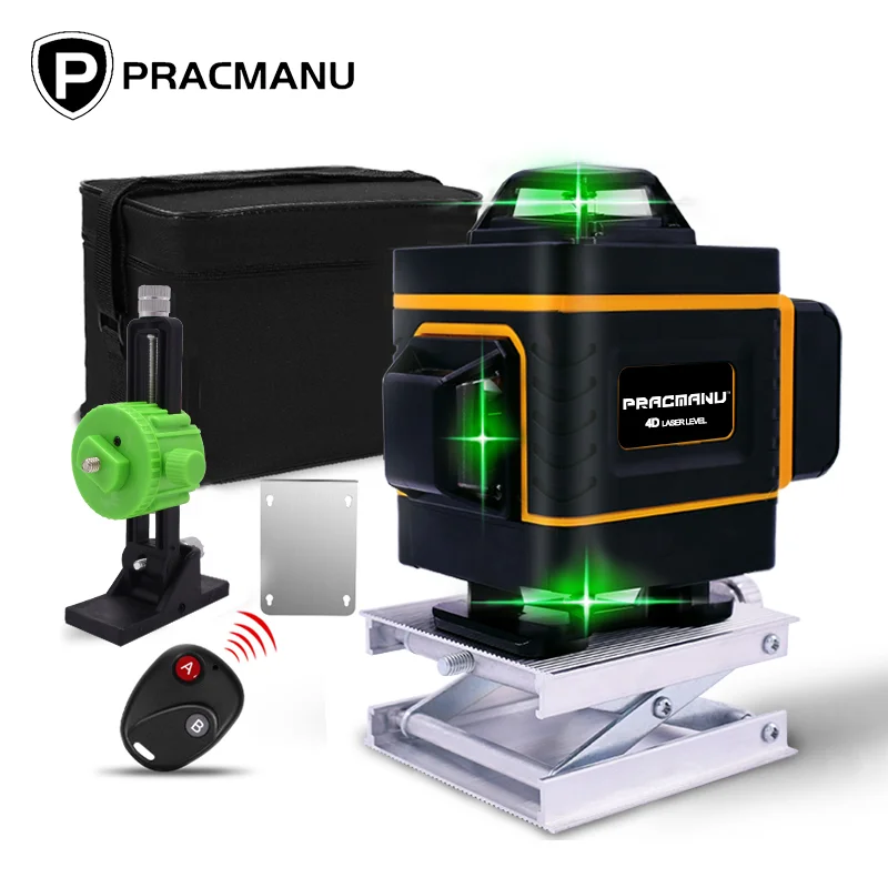 PRACMANU 16 линий 4D зеленый лазерный уровень Горизонтальные и вертикальные поперечные линии с автоматическим самонивелированием, в помещении и на открытом воздухе