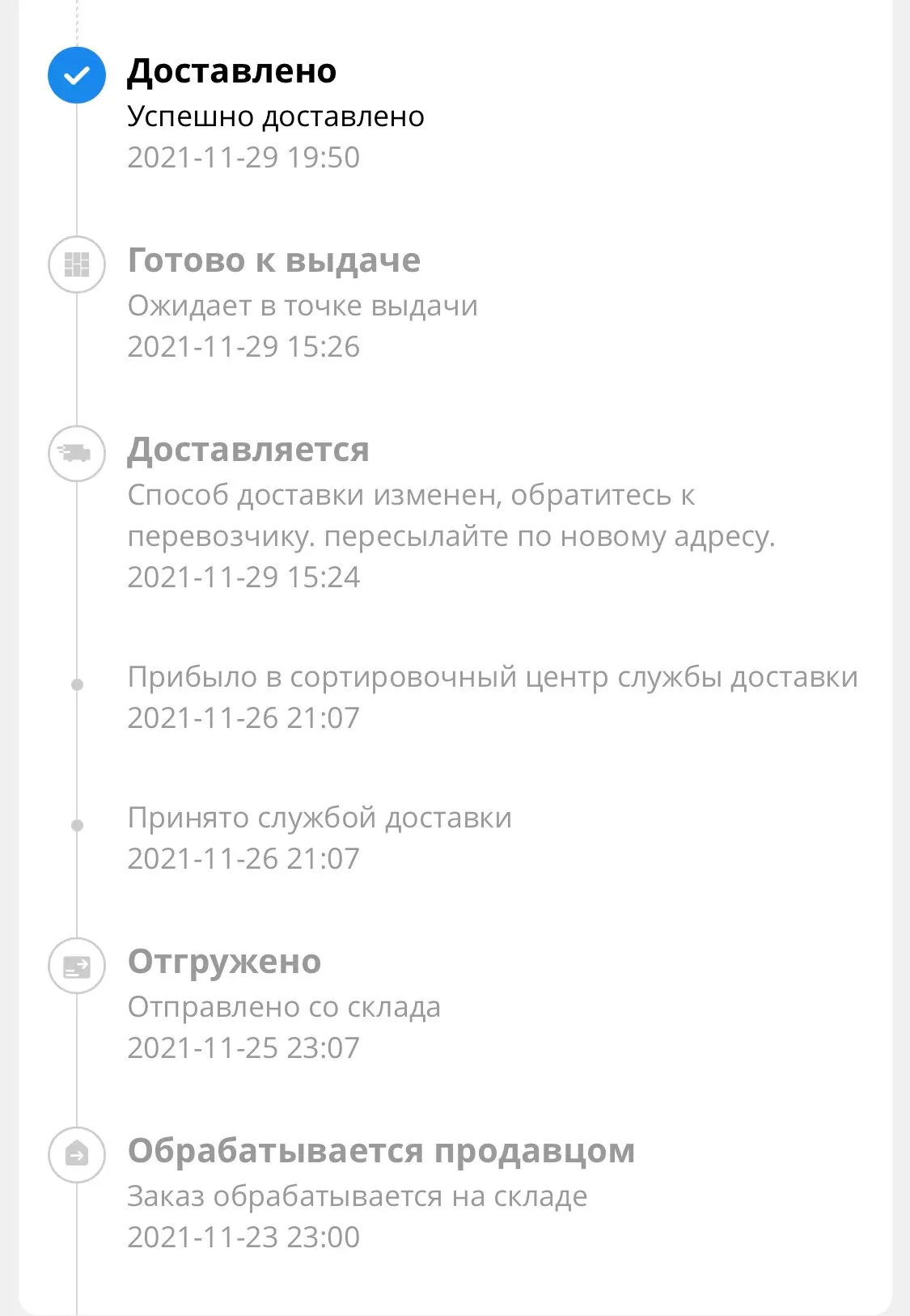 Нормально всё, единственно, было тиап статуса неудачное вручение посылки, следите за перемещением посылки, но я связался с продавцом, он дал мне ссылку куда обратиться, и в чате службы поддержки логистики али всё было решено.