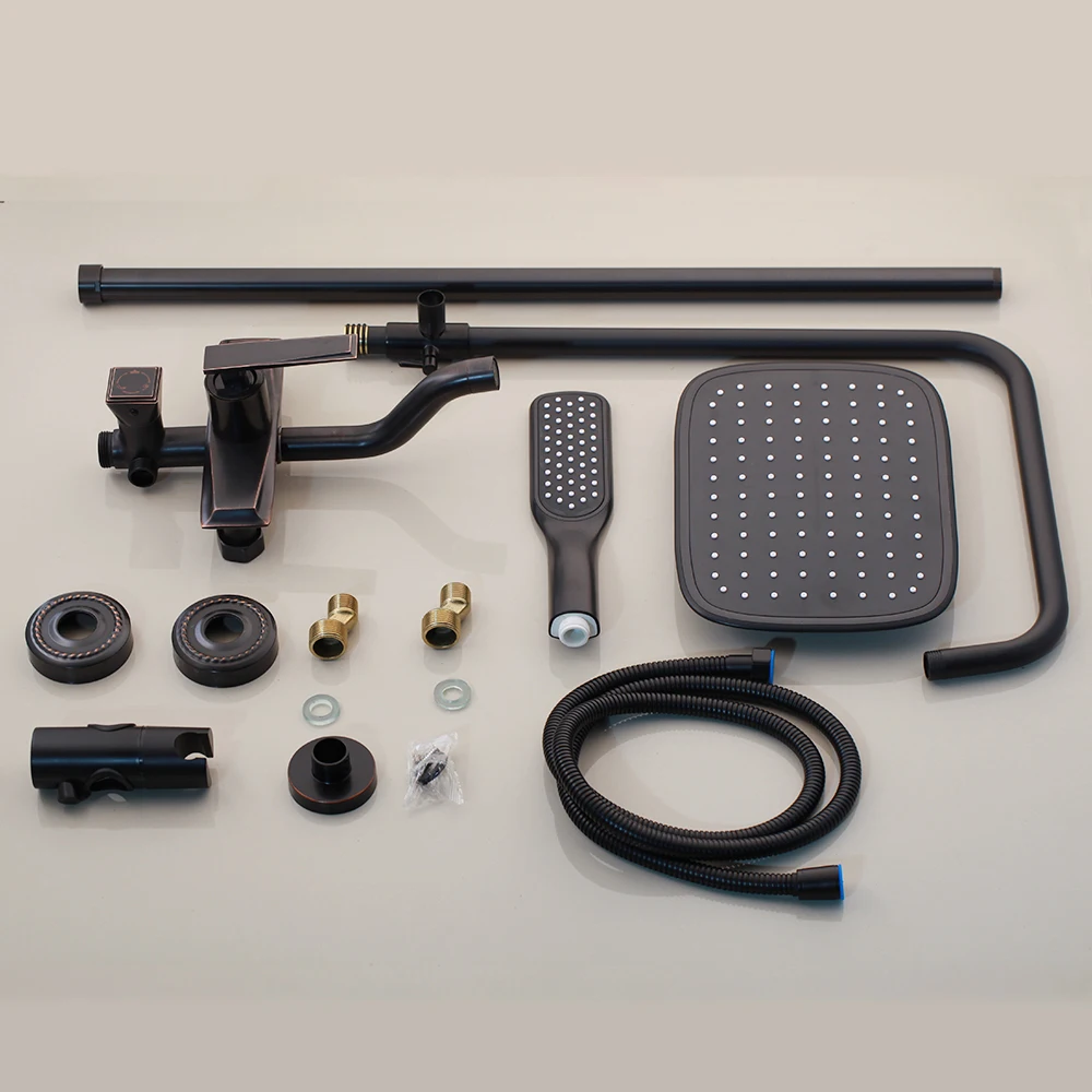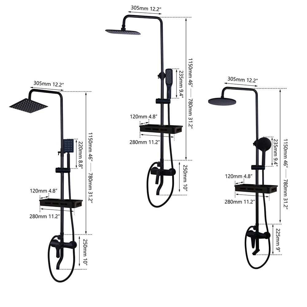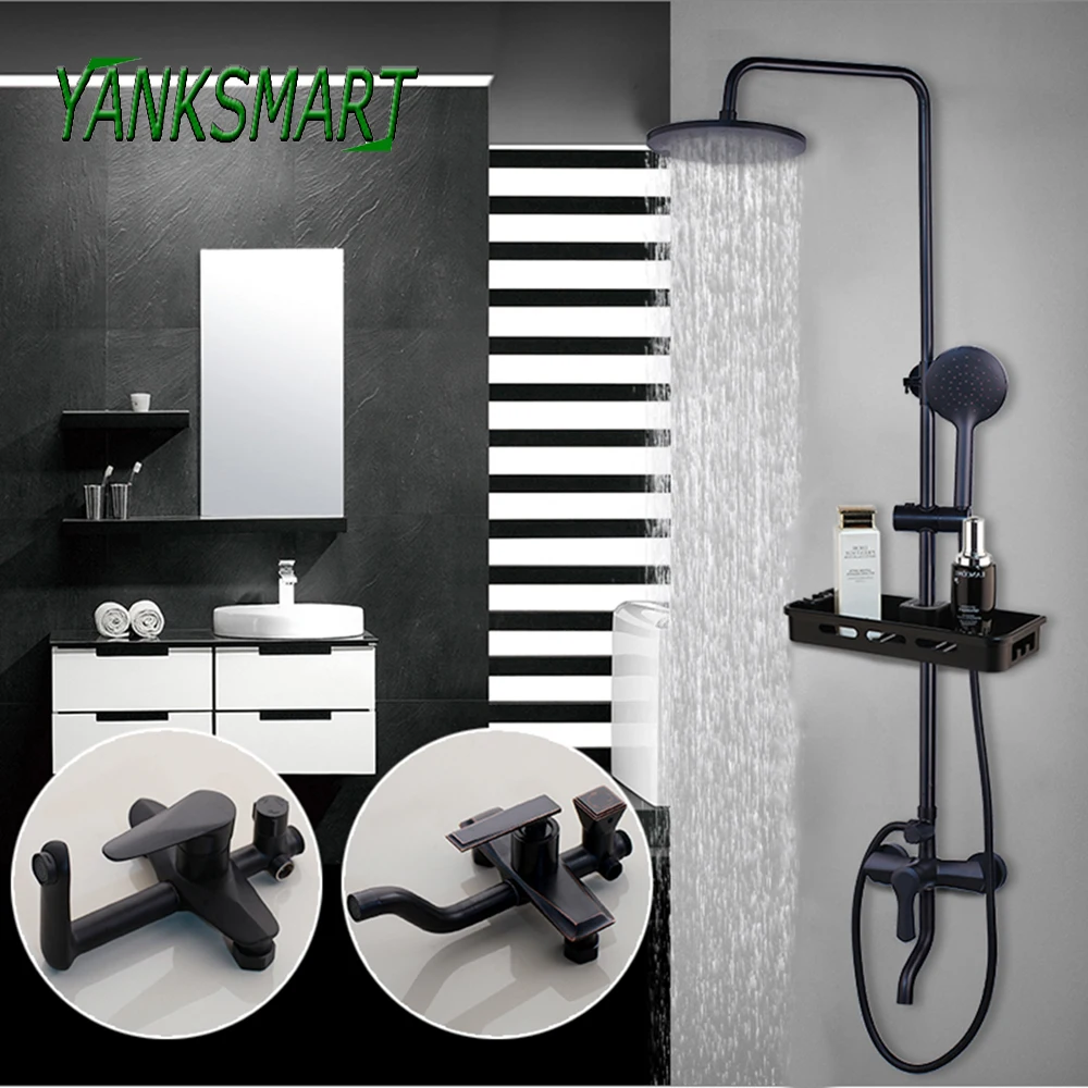 Смеситель для душа YANKSMART, матовый черный смеситель для душа с одной ручкой, настенный смеситель с полкой для хранения и ручным распылителем, смеситель для ванной комнаты
