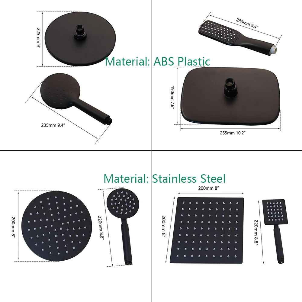 Абсолютно новый в коробке готов к отправке Размер душевой головки: 8 "(200 мм) Прочная конструкция из твердой латуни Настенная установка Черная отделка Материал полки-АБС-пластик Простота установки Легко чистить. Может быть очищен мягким мылом, чтобы обеспечить безтарнический блеск жизни Шарнирное шарнирное соединение регулируемое, чтобы удовлетворить ваши потребности Резиновые насадки для легкой очистки Смешивание света и воды, принесет вам комфортное время душа Поставляется с 24 месячной гарантией производителя