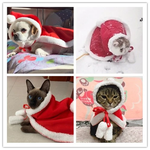 Рождественский костюм для домашних животных на новый год пончо накидка щенок котенок маленькие собаки Санта Клаус накидка одежда