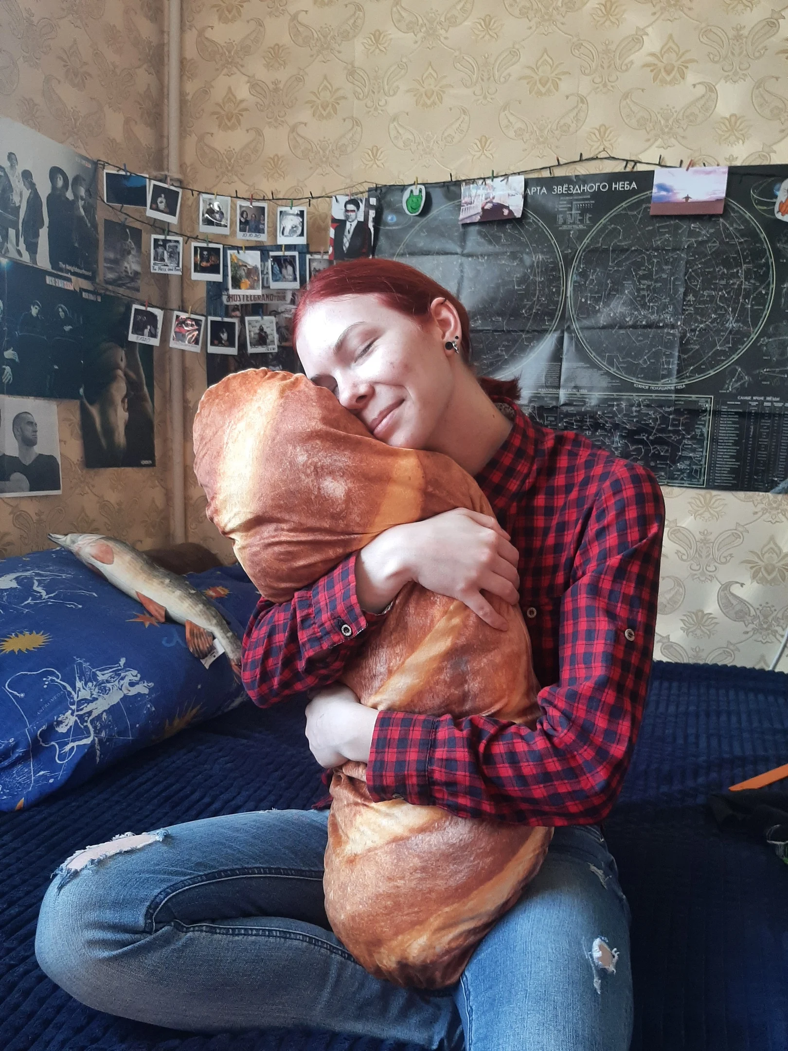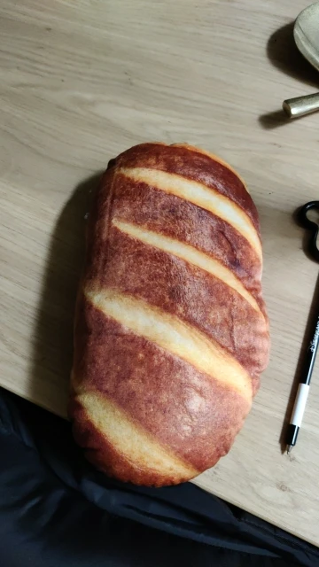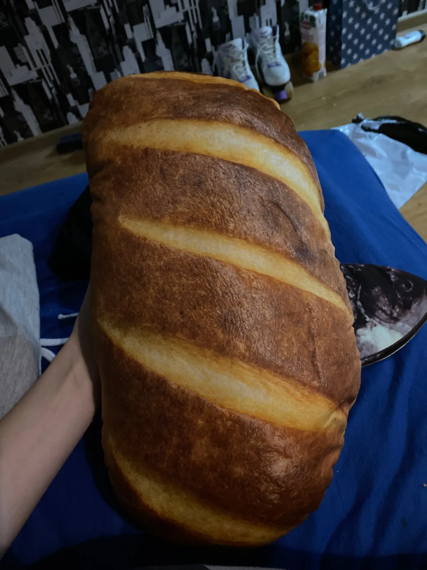 буханка норм! брали средний размер. мягка ткань, внутри синтепон, аккуратно вшитая молния. реально похож на хлеб ))