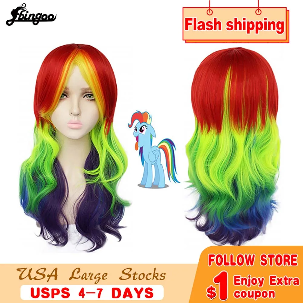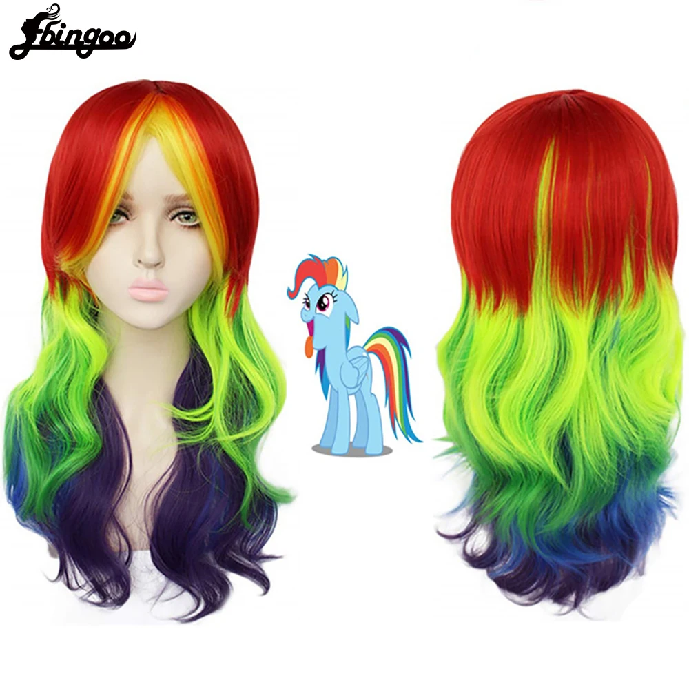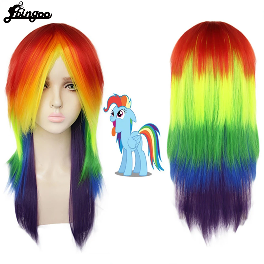 Ebingoo мой маленький пони Радуга тире многоцветный косплей парик цвет красочные прямые волны синтетические термостойкие волокна парик