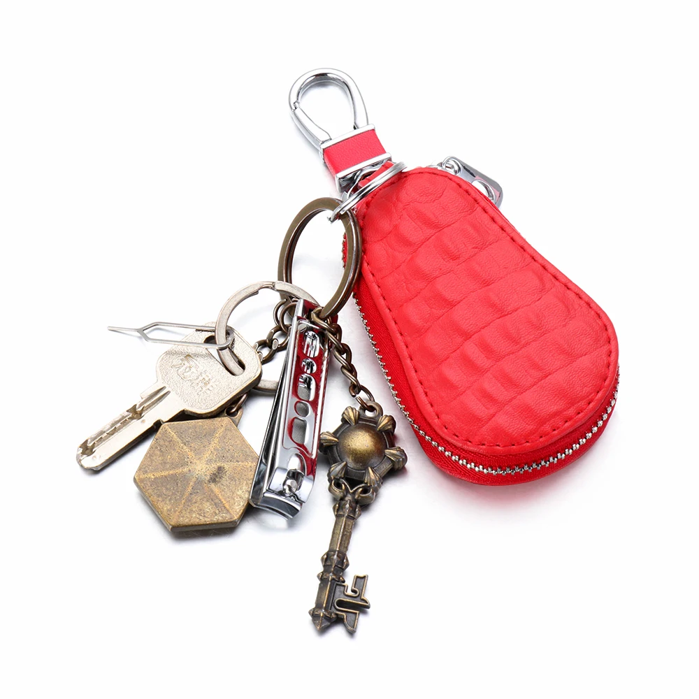 Сумки для автомобильных ключей из натуральной кожи для мужчин и женщин, держатель для ключей с узором под кожу крокодила, органайзер, кошелек на молнии, чехол для ключей и мелочей